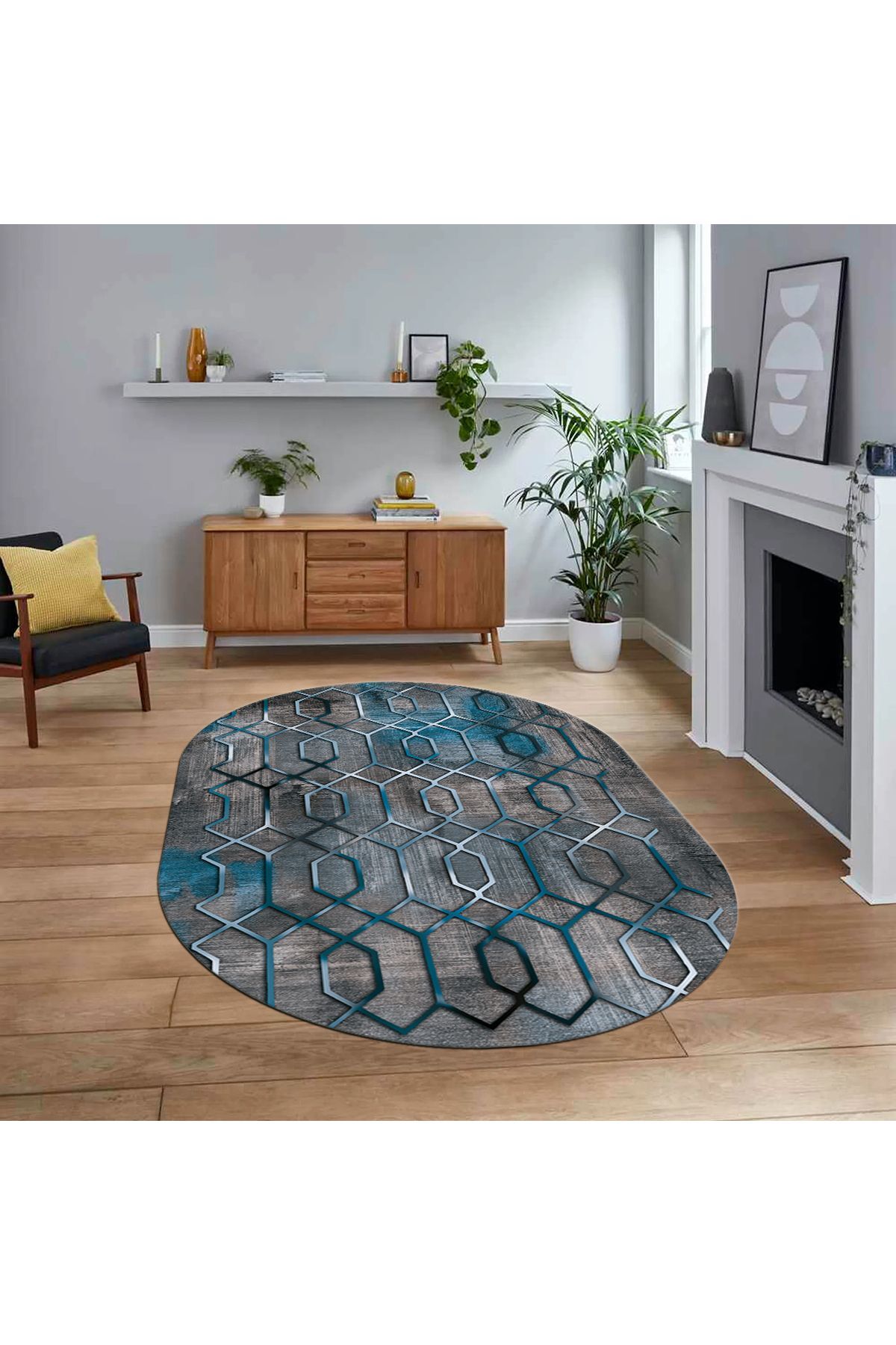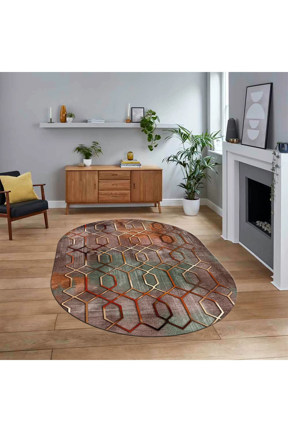 Dijital Baskılı Kaymaz Taban Yıkanabilir Oval Modern Yolluk Salon Halısı, V-O-MODERN-90-VİZON, Dijital Baskılı Kaymaz Taban Yıkanabilir Oval Modern Yolluk Salon Halısı, V-O-MODERN-90-VİZON, V-MODERN-90 160 x 230