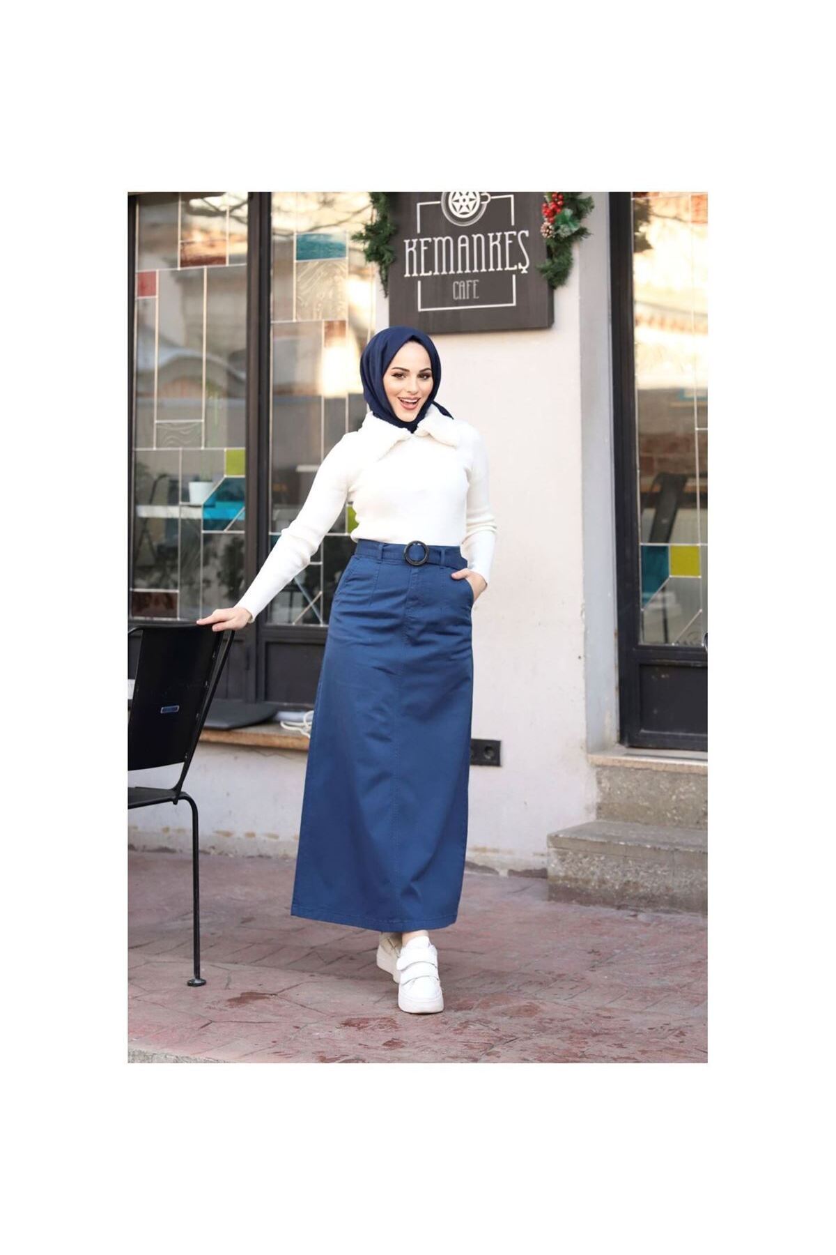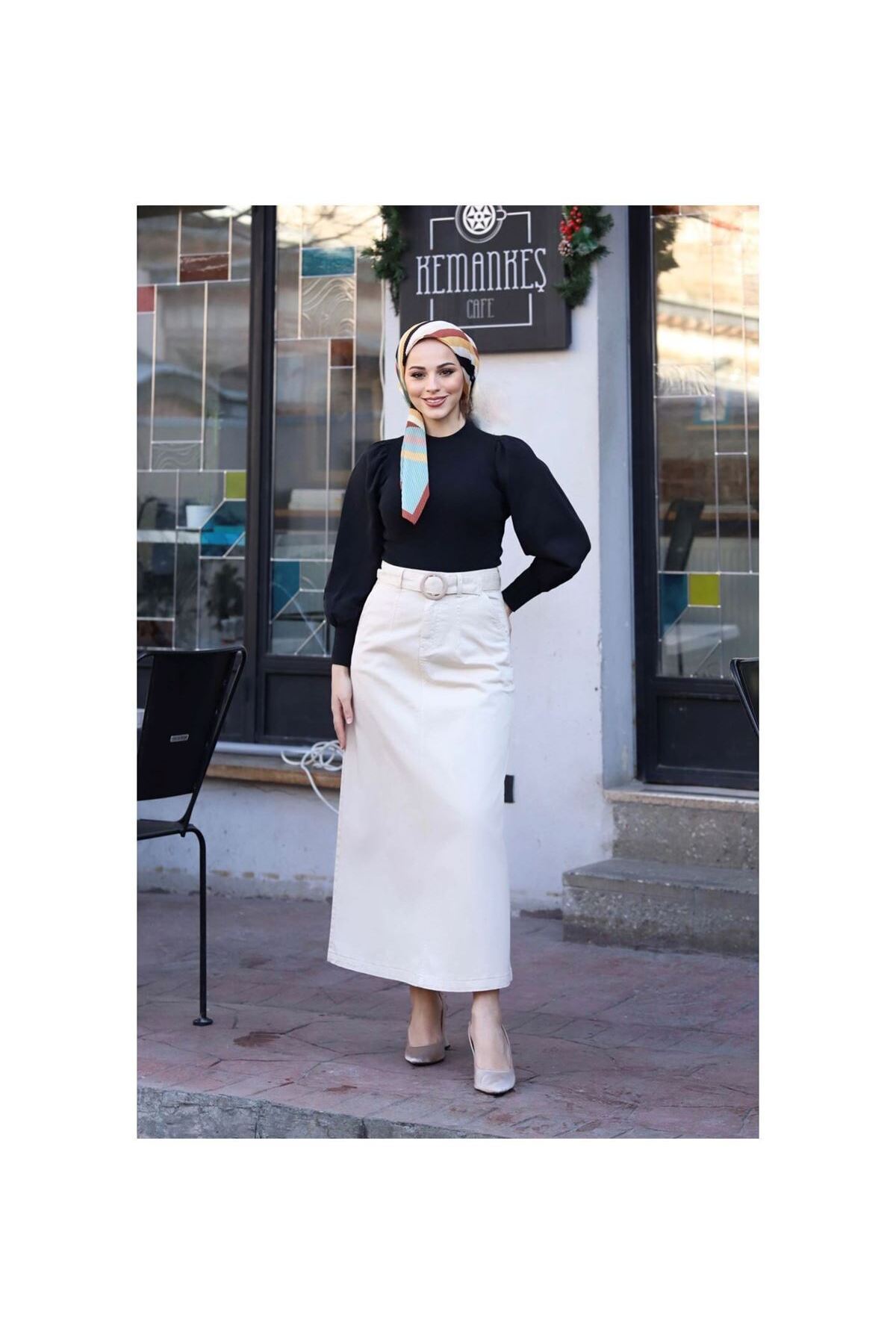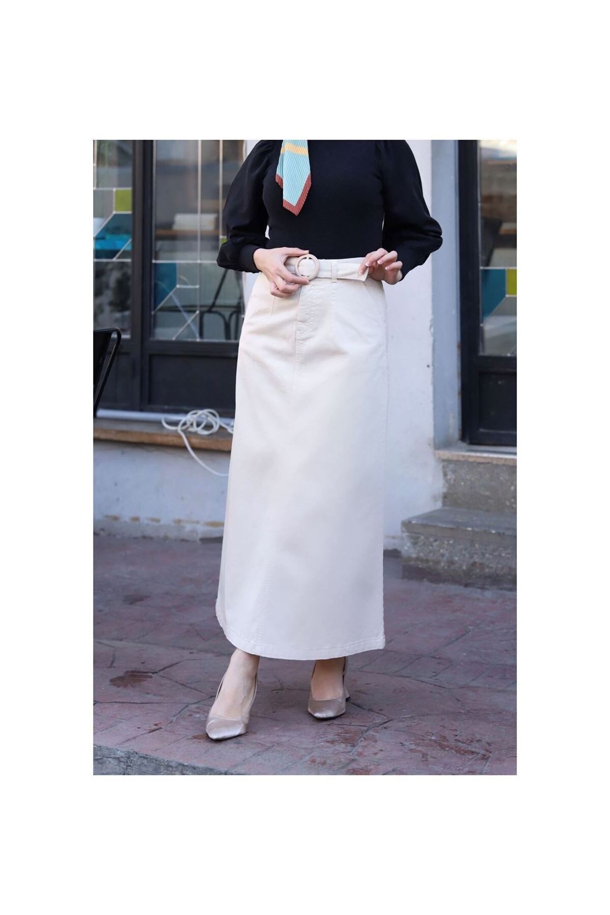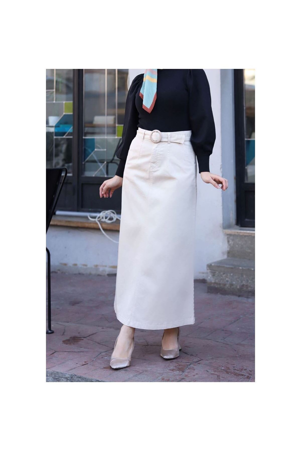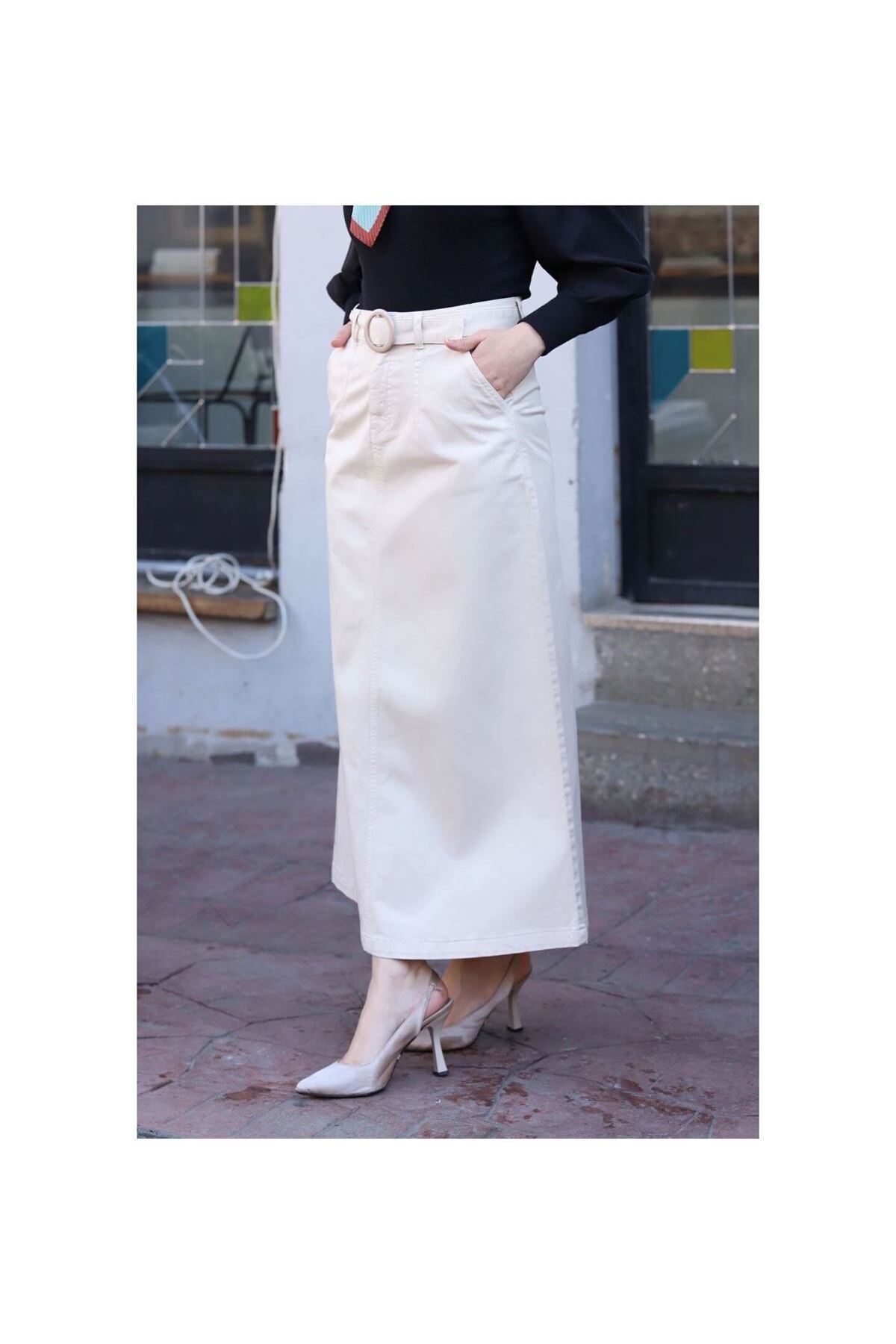 Cep Detaylı Kemerli Tokalı Gabardin Etek Krem Cep Detaylı Kemerli Tokalı Gabardin Etek Krem ET00022 42