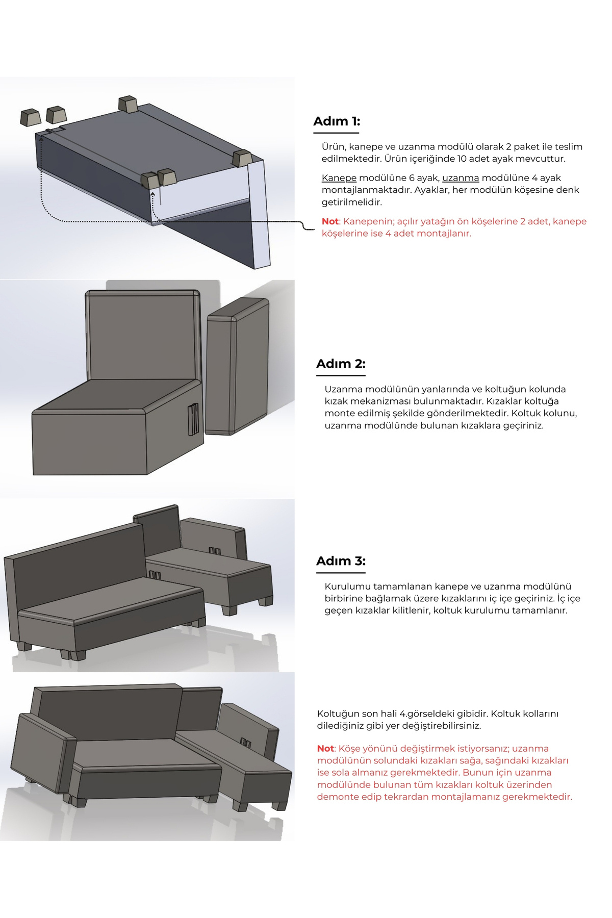- Köşe Yönü : Sağ-Sol Değiştirilebilir