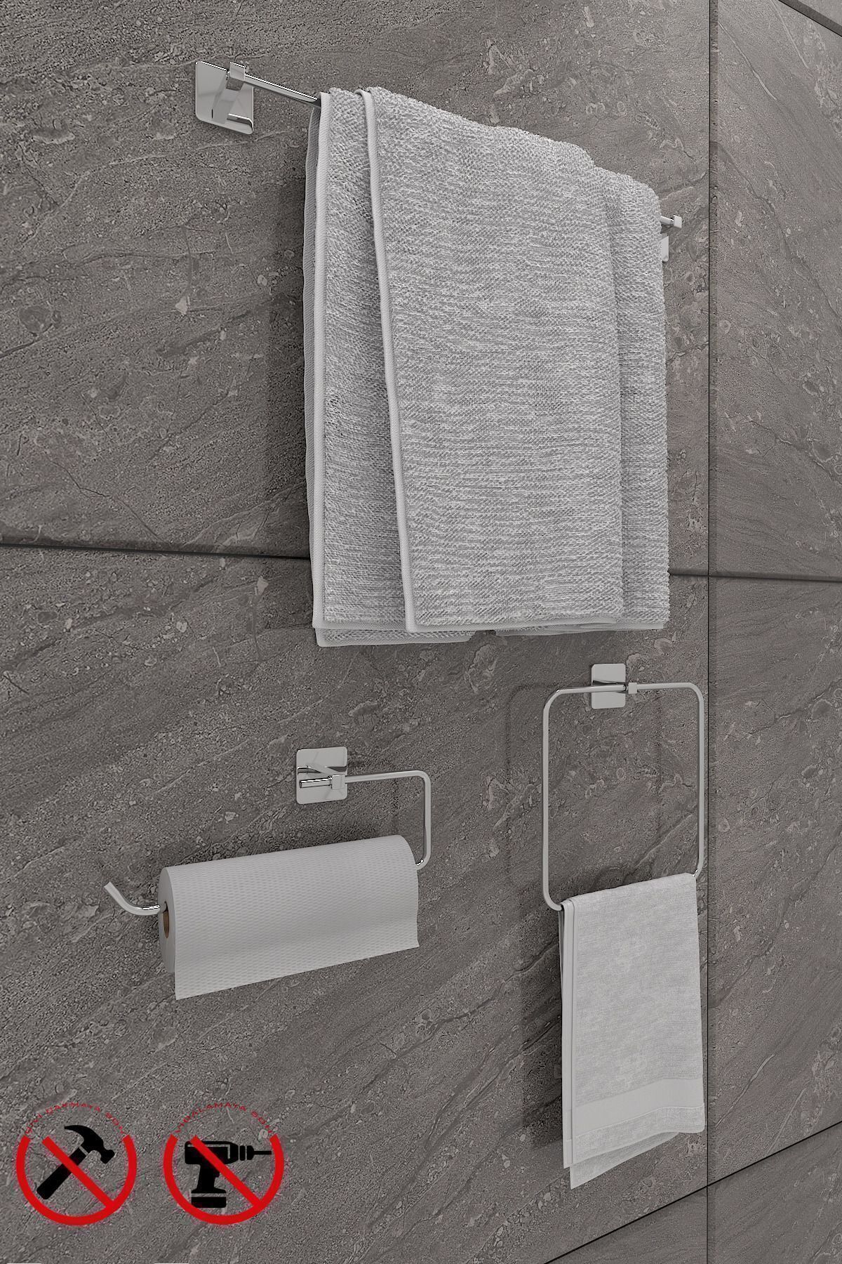 Yapışkanlı Gümüş Rulo Havluluk Wc Kağıtlık ve Çember Havluluk Banyo Mutfak 3'lü Set Yapışkanlı Gümüş Rulo Havluluk Wc Kağıtlık ve Çember Havluluk Banyo Mutfak 3'lü Set ATC3LüWcRuloYuvarlakKrom تک سایز