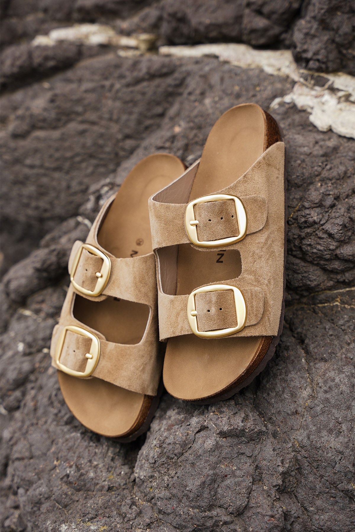Kadın Hakiki Deri Günlük Terlik Çift Bantlı Terlik Eva Taban Poli Camel Kadın Hakiki Deri Günlük Terlik Çift Bantlı Terlik Eva Taban Poli Camel 321102701 40
