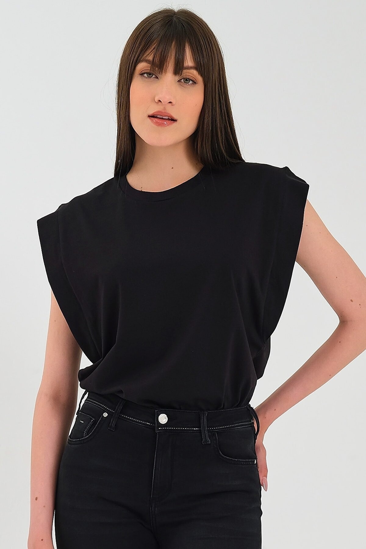 Kadın Kol Manşeti Inci Detaylı Yarasa T-shırt Kadın Kol Manşeti Inci Detaylı Yarasa T-shırt Live1014 2XL