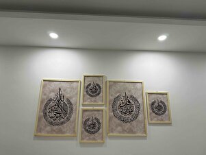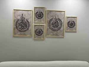Ahşap Çerçeveli 5 Parça İslami Tablo Seti Ayetel Kursi Nas Felak İhlas Kafirun Sureleri Ahşap Çerçeveli 5 Parça İslami Tablo Seti Ayetel Kursi Nas Felak İhlas Kafirun Sureleri 5liSurah 100 x 180