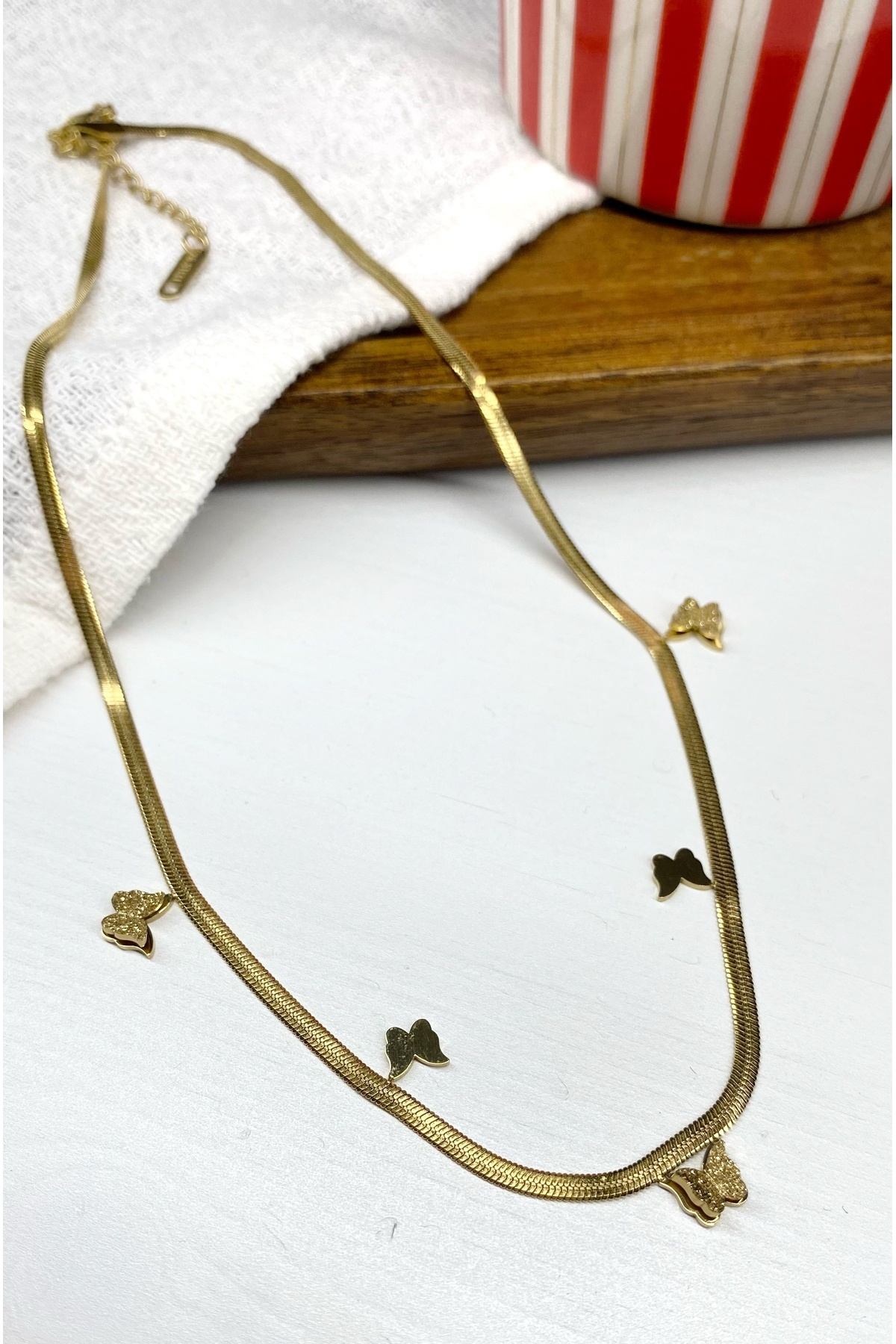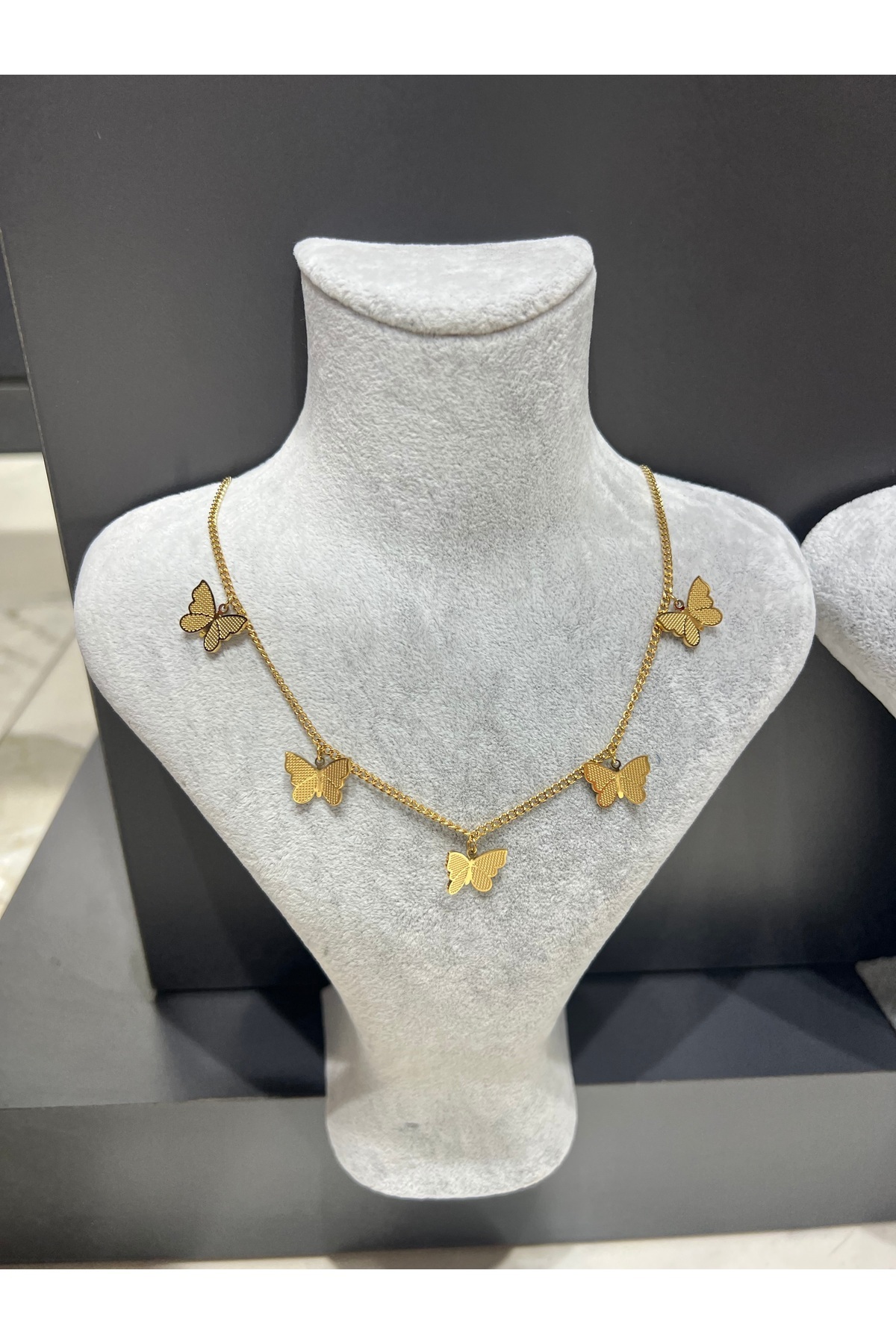 Gold Kelebekli İtalyan Zincir Çelik Kolye Gold Kelebekli İtalyan Zincir Çelik Kolye BG012 40 cm