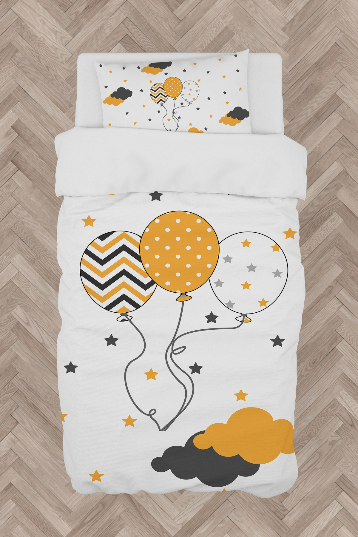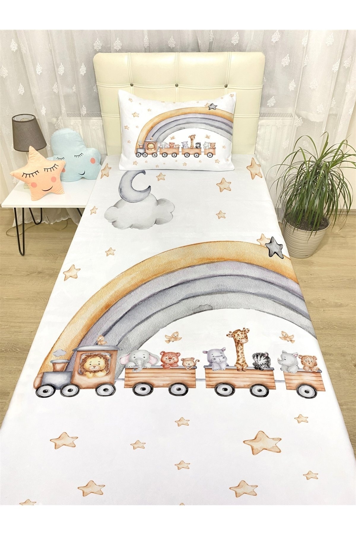 Uçan Balonlu Safari Desenli Yatak Örtüsü ve Yastık Kılıfı Uçan Balonlu Safari Desenli Yatak Örtüsü ve Yastık Kılıfı evortu1774 تک سایز