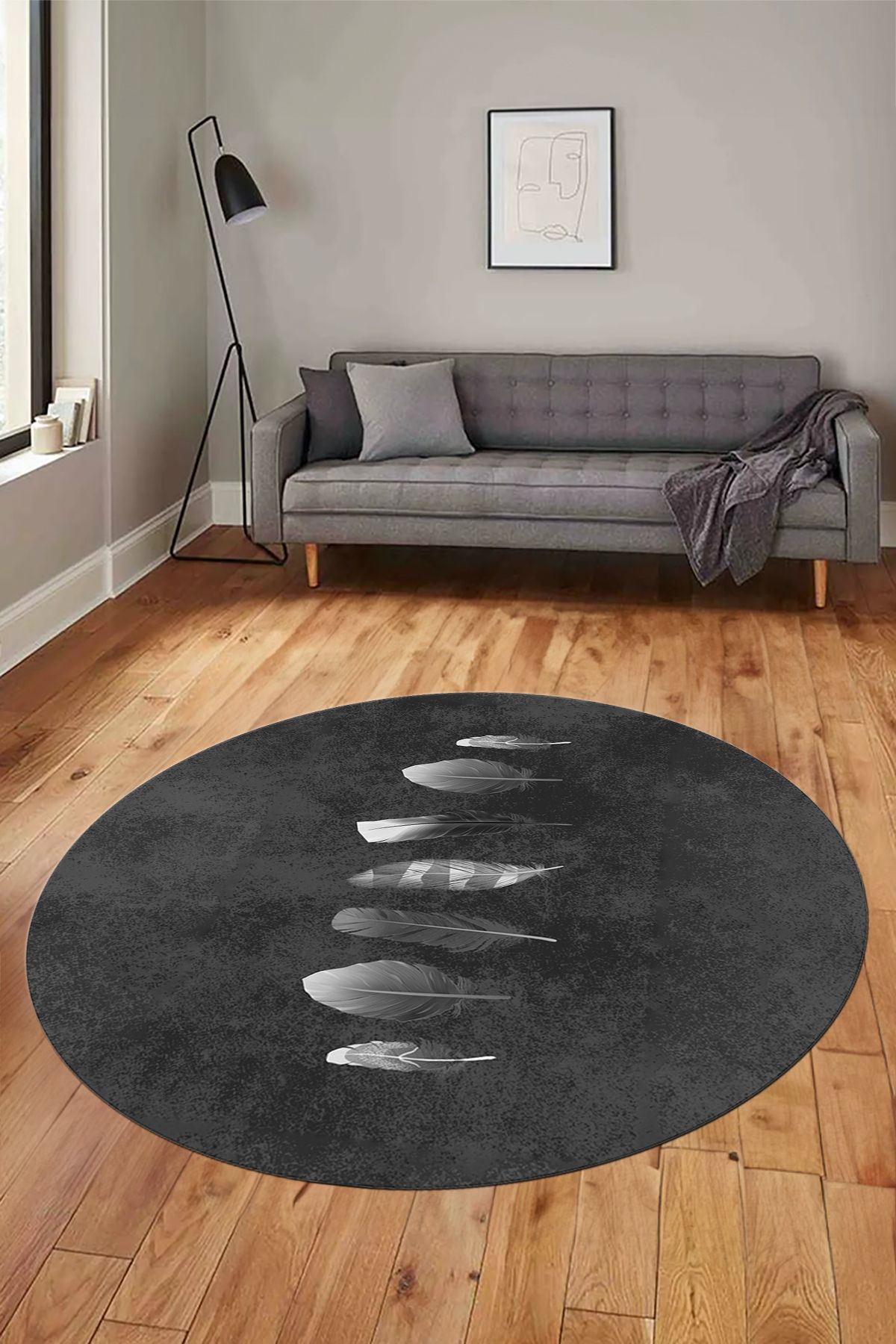 Yaprak Desenli Baskılı Kaymaz Taban Yıkanabilir Yuvarlak Mutfak Salon Halısı Yaprak Desenli Baskılı Kaymaz Taban Yıkanabilir Yuvarlak Mutfak Salon Halısı MODERN-115 180 x 180