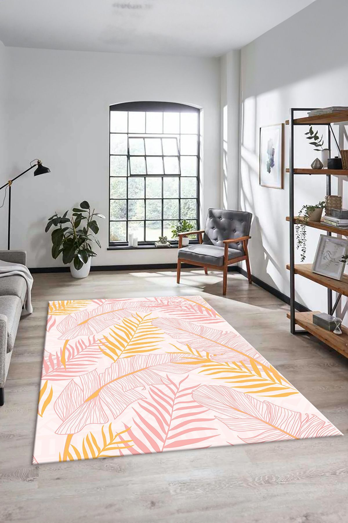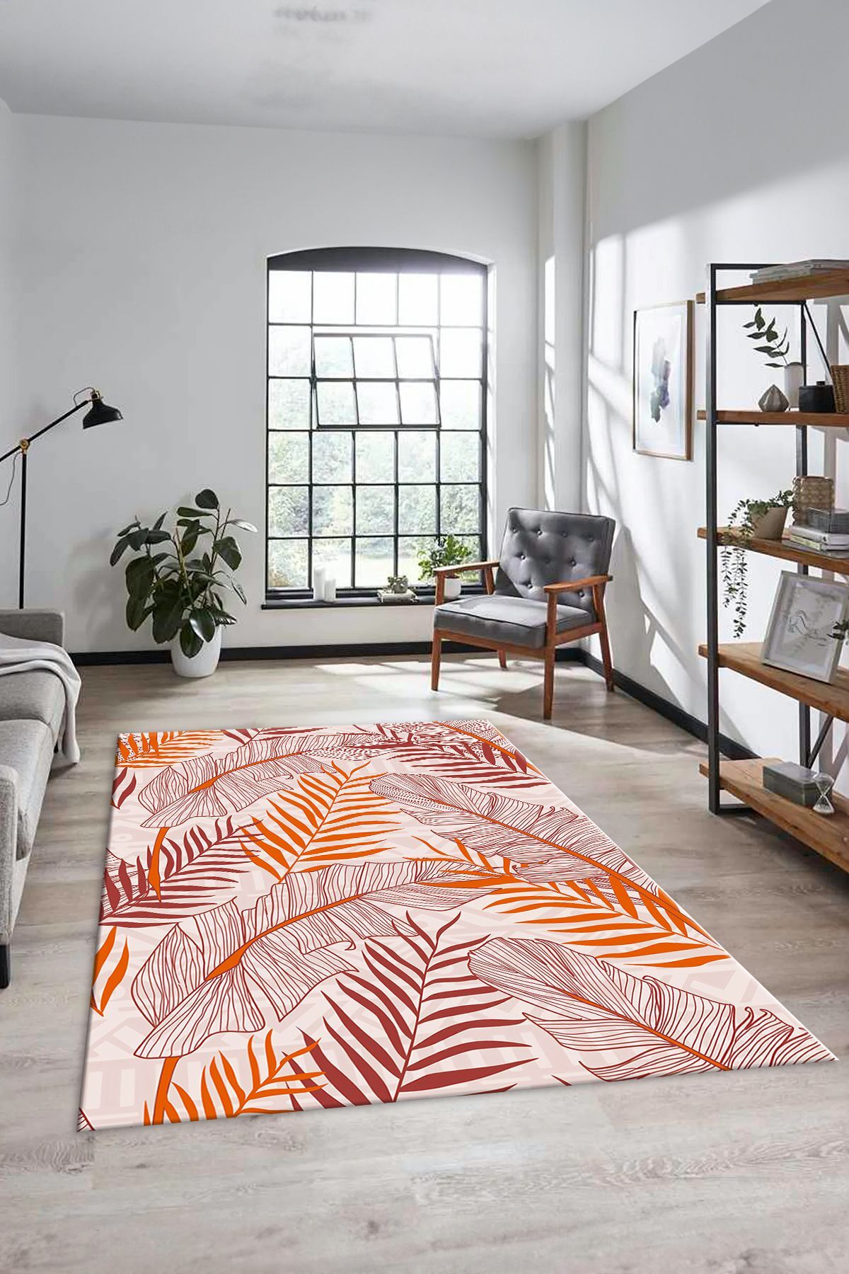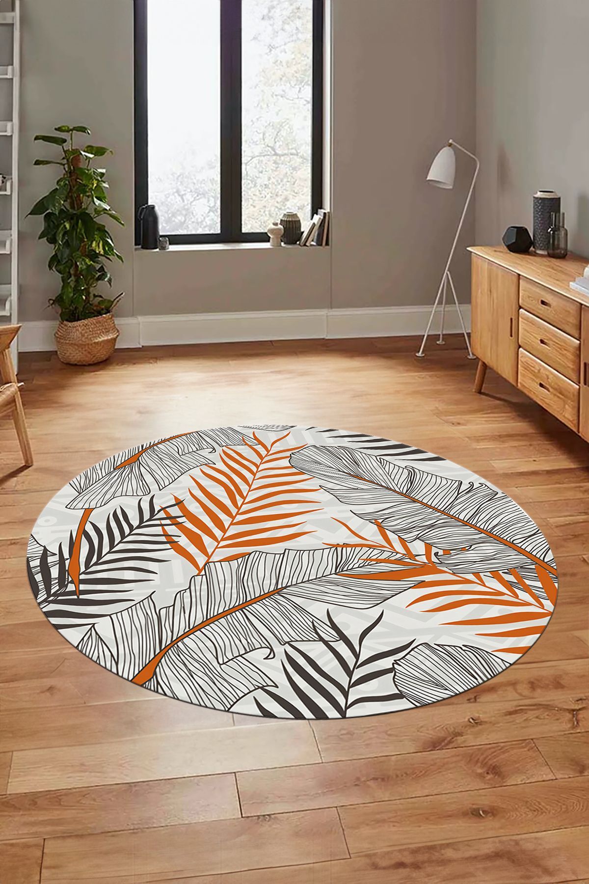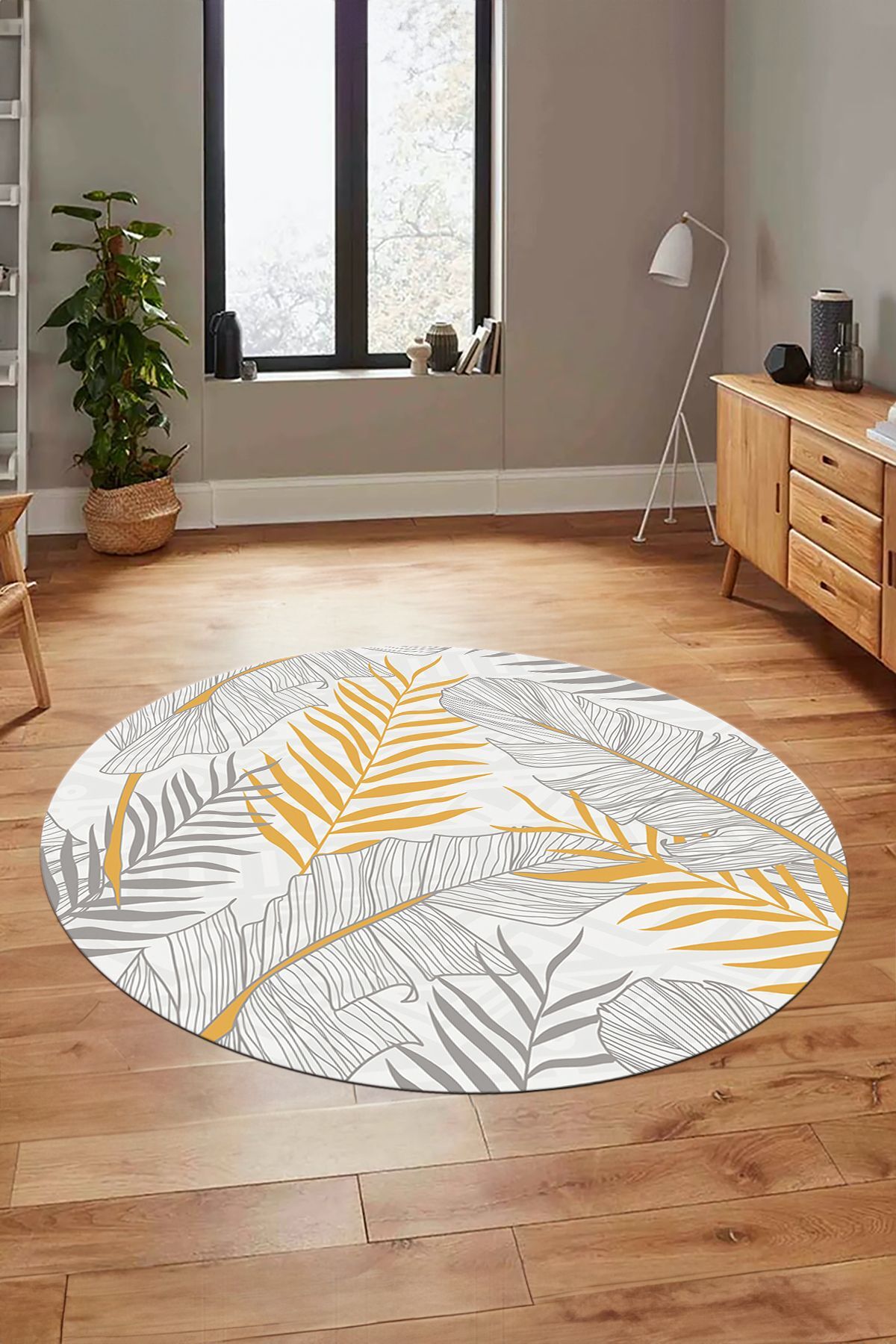 Yapraklı Baskılı Kaymaz Taban Yıkanabilir Modern Yuvarlak Salon Halısı Yapraklı Baskılı Kaymaz Taban Yıkanabilir Modern Yuvarlak Salon Halısı MODERN-98 180 x 180
