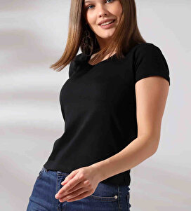 Pamuklu Penye Kompakt Likralı V Yaka Kısa Kol Basic T-shirt 21043 Siyah Pamuklu Penye Kompakt Likralı V Yaka Kısa Kol Basic T-shirt 21043 Siyah 101BY010006 XL