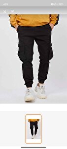 Likralı Beli Ve Paçası Lastikli Siyah Kargo Pantolon Likralı Beli Ve Paçası Lastikli Siyah Kargo Pantolon SHN66014899 XL