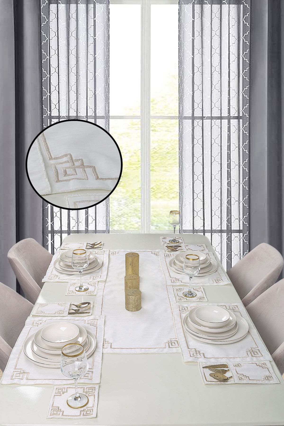 Kadife/8 Kişilik Sofra Sunum Seti/krem(EKRU)gold/1 Runner,8 Servis,8 Bardakaltlığı,8 Kaşıklık Kadife/8 Kişilik Sofra Sunum Seti/krem(EKRU)gold/1 Runner,8 Servis,8 Bardakaltlığı,8 Kaşıklık HKN8KŞLKKDF تک سایز