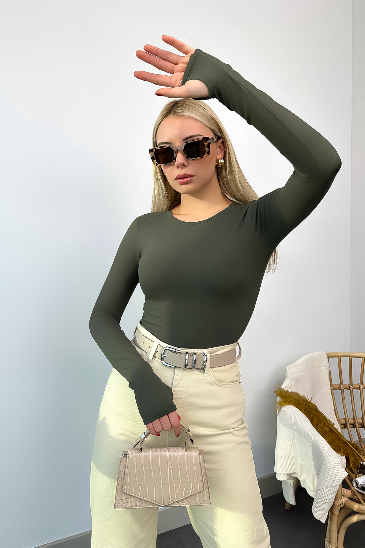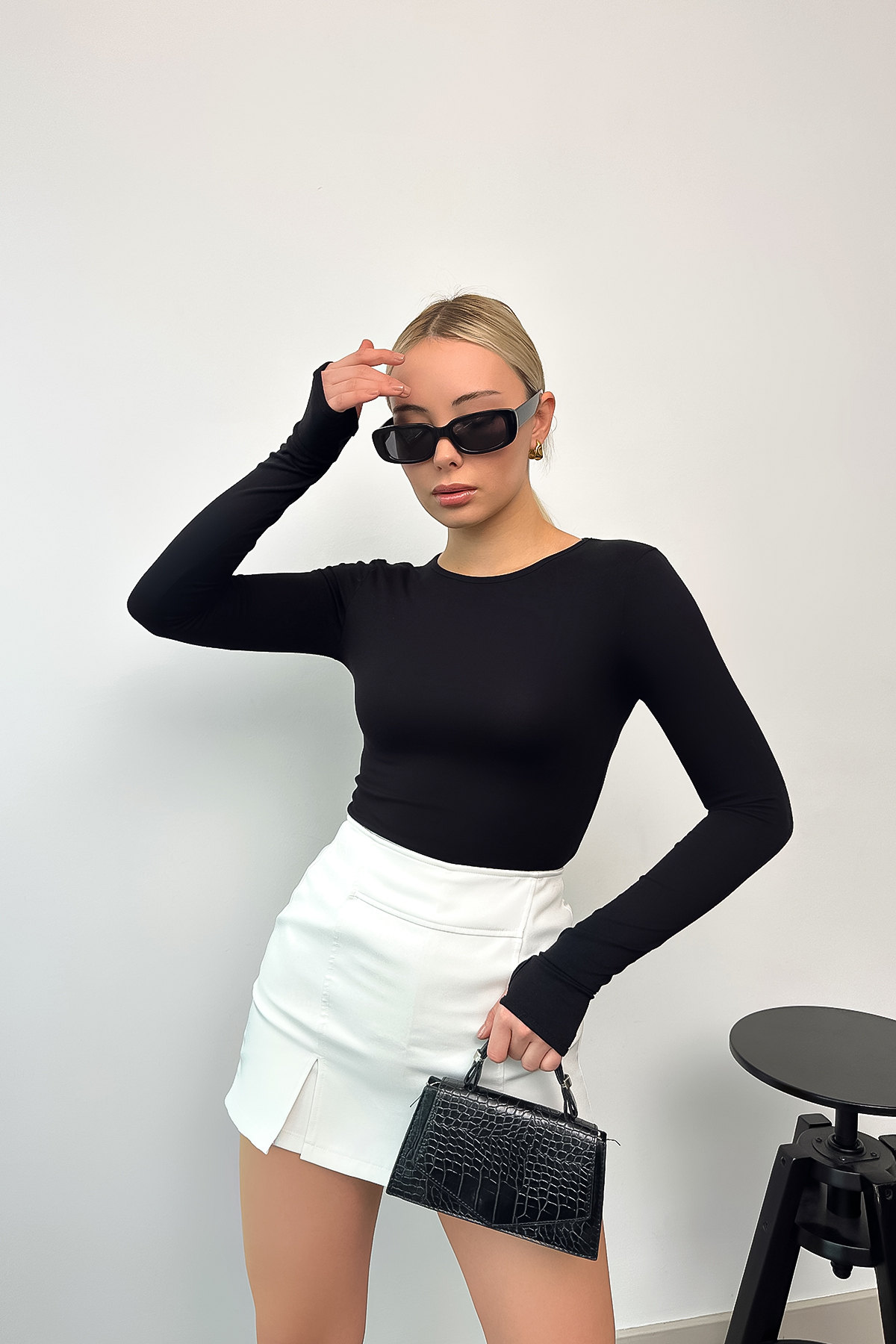 Kadın Gri Cotton Bisiklet Yaka Parmak Geçmeli Body Kadın Gri Cotton Bisiklet Yaka Parmak Geçmeli Body BLZ-202423 L