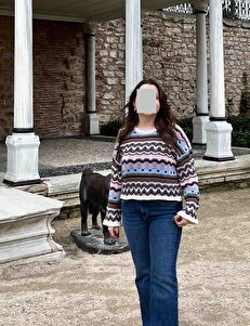 Krem Gök Mavi Desenli Mevsimlik Triko Kazak MC00253 Krem Gök Mavi Desenli Mevsimlik Triko Kazak MC00253 Standart