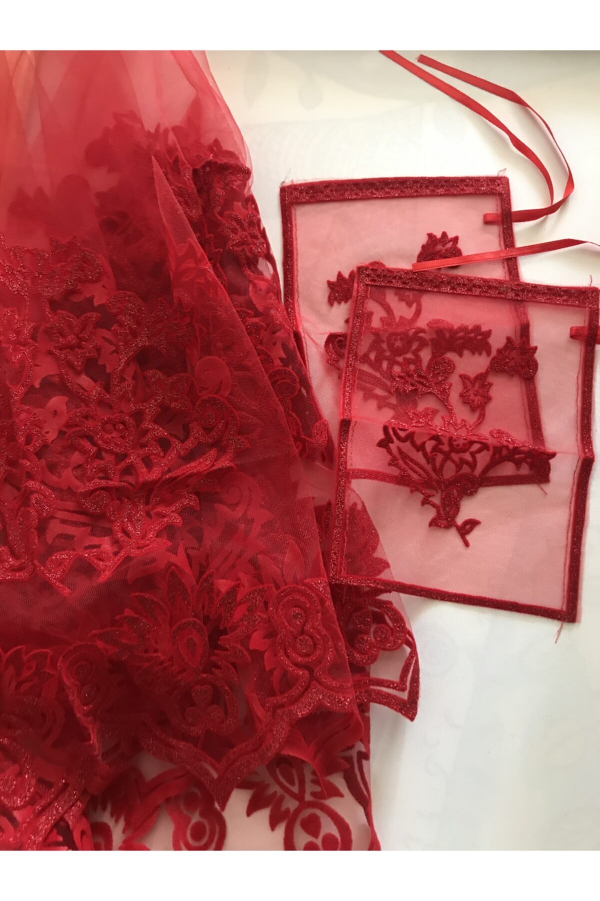 Kırmızı Gelin Kına Duvağı Flok Sim Baskılı Kına Örtüsü Seti Kırmızı Gelin Kına Duvağı Flok Sim Baskılı Kına Örtüsü Seti 5 تک سایز