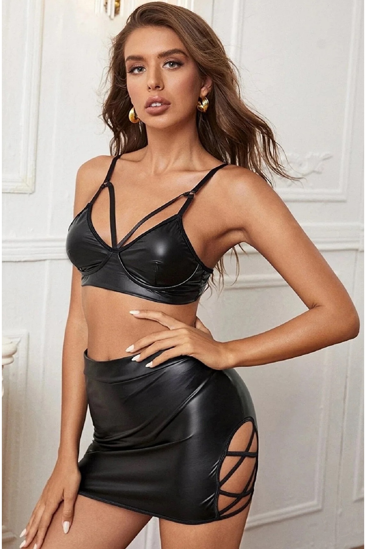 Kadın Lame Kaplama Deri Görünümlü Kumaş Elbise Kadın Lame Kaplama Deri Görünümlü Kumaş Elbise Liya-33215-Elbise XL