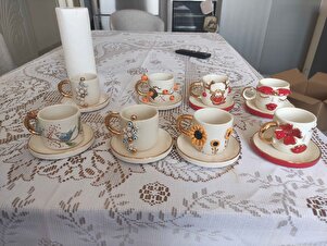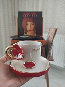 Çiçek Kadın Figürlü, 24 Ayar Altınlı, El Yapımı, Seramik Duble Türk Kahvesi Fincanı Çiçek Kadın Figürlü, 24 Ayar Altınlı, El Yapımı, Seramik Duble Türk Kahvesi Fincanı MCF-0041 تک سایز