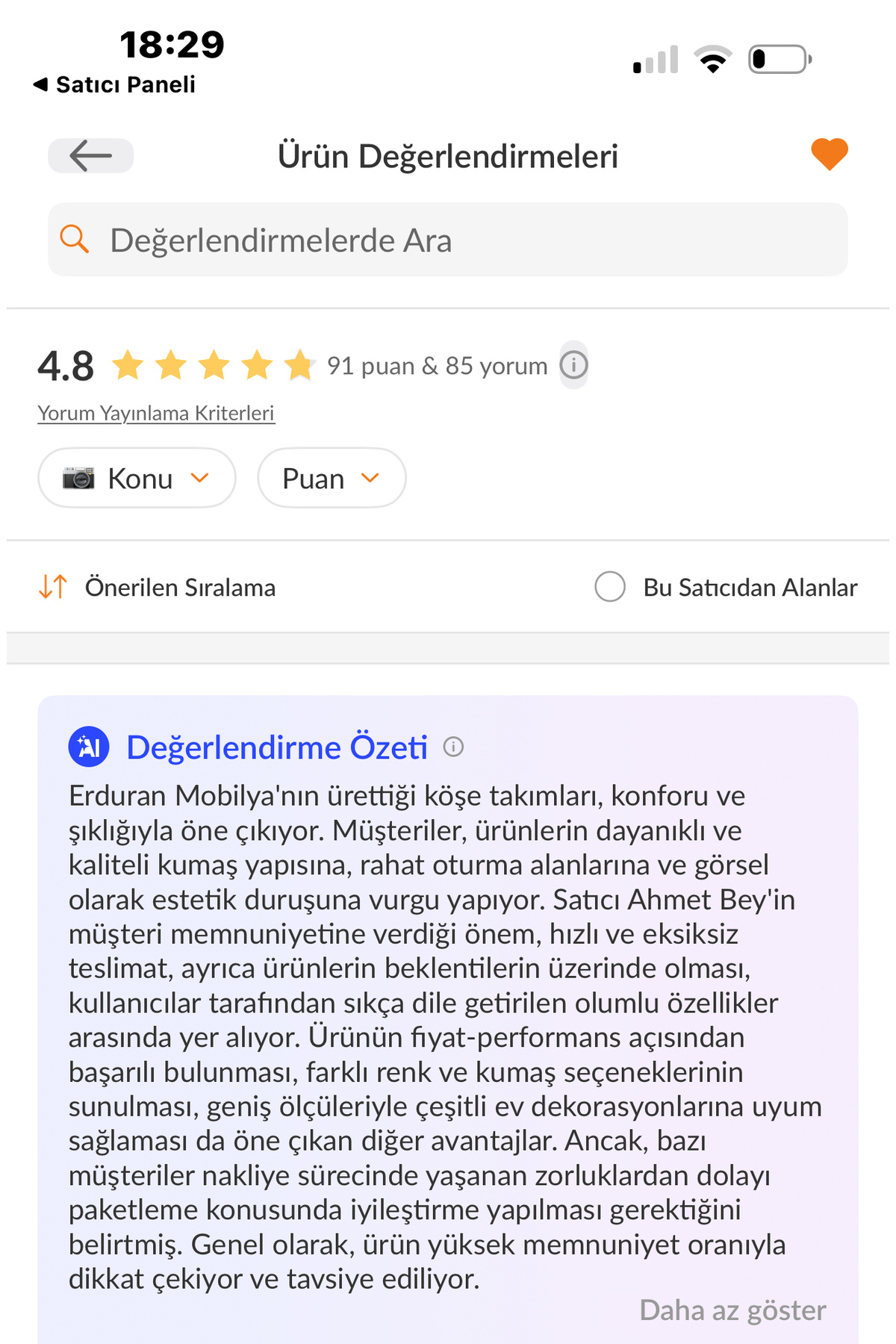 - Köşe Yönü : Sağ-Sol Değiştirilebilir