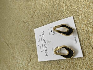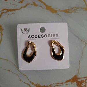 Asimetrik SİYAH Mineli Altın Renk Küpe Asimetrik SİYAH Mineli Altın Renk Küpe DLFMİNE تک سایز