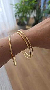 2 Yıl Garantili 3'lü Ajda Bilezik Paslanmaz Çelik Üzeri 14 Ayar Altın Kaplama 2 Yıl Garantili 3'lü Ajda Bilezik Paslanmaz Çelik Üzeri 14 Ayar Altın Kaplama fg423 6 cm