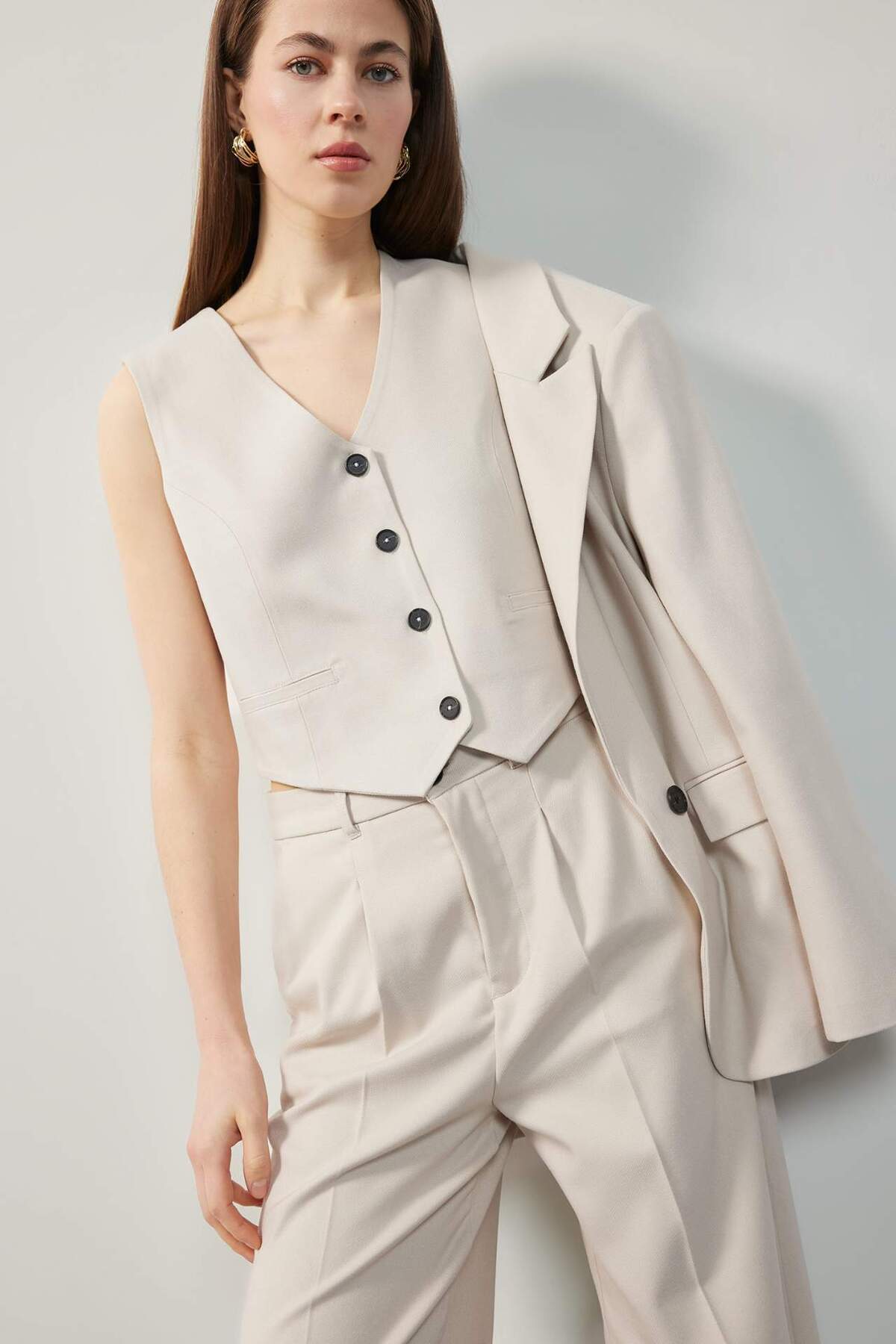 V Yaka Düğmeki Klasik Blazer Yelek C2026AX24SP V Yaka Düğmeki Klasik Blazer Yelek C2026AX24SP 42