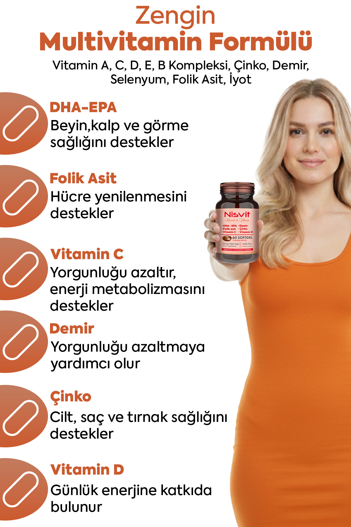 Omega 3, Epa - Dha, Demir, Folik Asit, Vitamin, B, C, D, E, Çinko, Iyot Içeren Multivitamin Omega 3, Epa - Dha, Demir, Folik Asit, Vitamin, B, C, D, E, Çinko, Iyot Içeren Multivitamin TYCWH1DWCN170608707675576 تک سایز