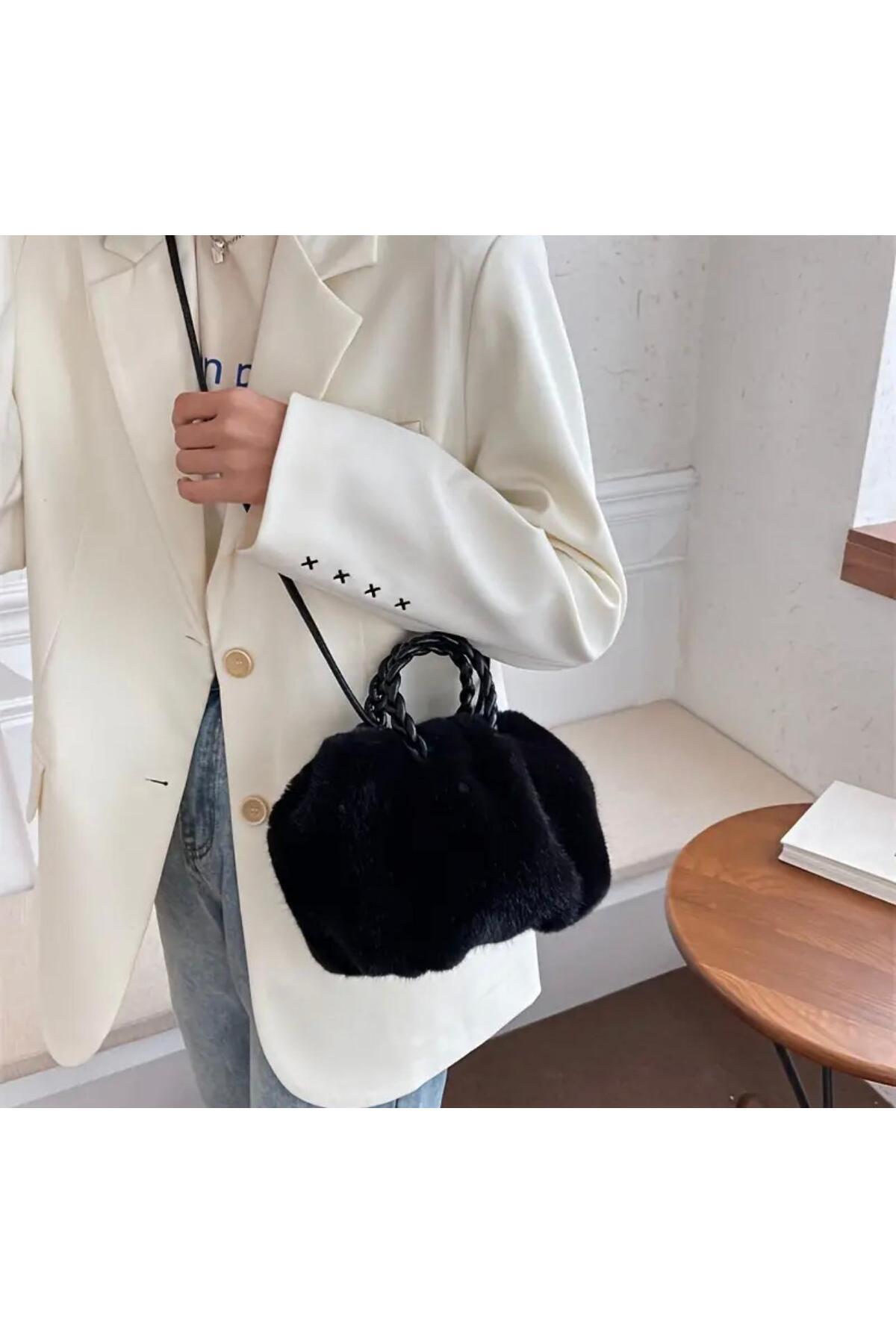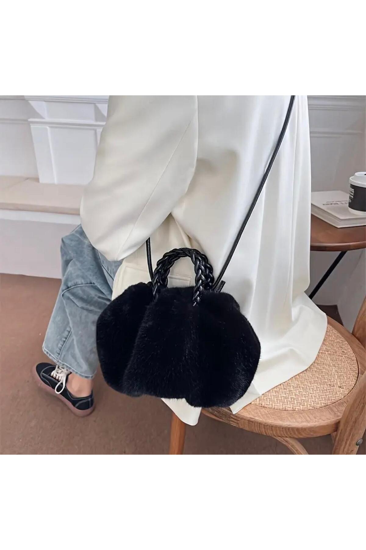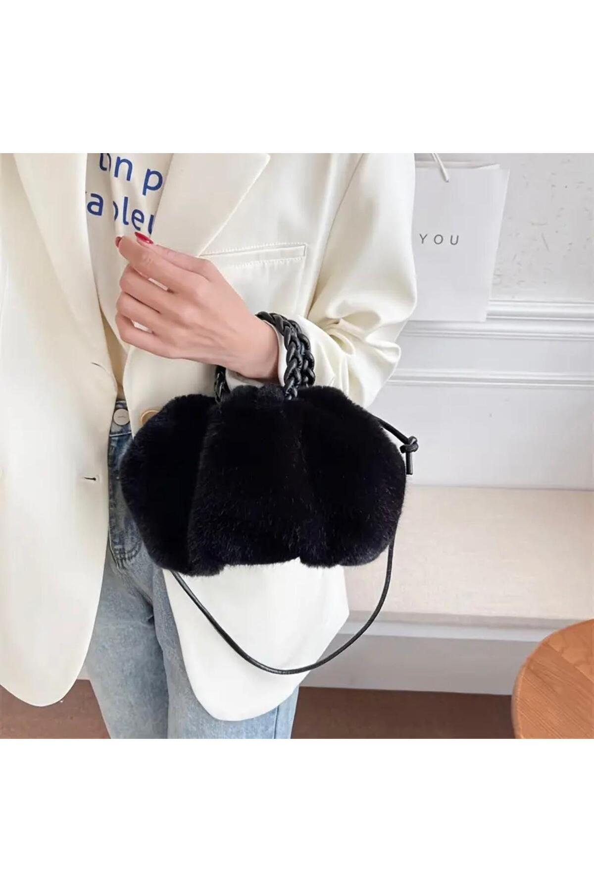Tavşan Tüylü Suni Kürk Peluş Kadın Omuz Kol Çanta Tavşan Tüylü Suni Kürk Peluş Kadın Omuz Kol Çanta 201 Standart