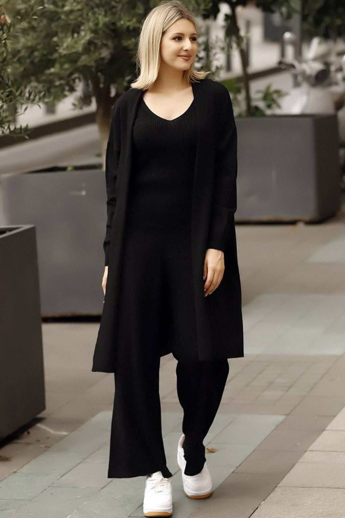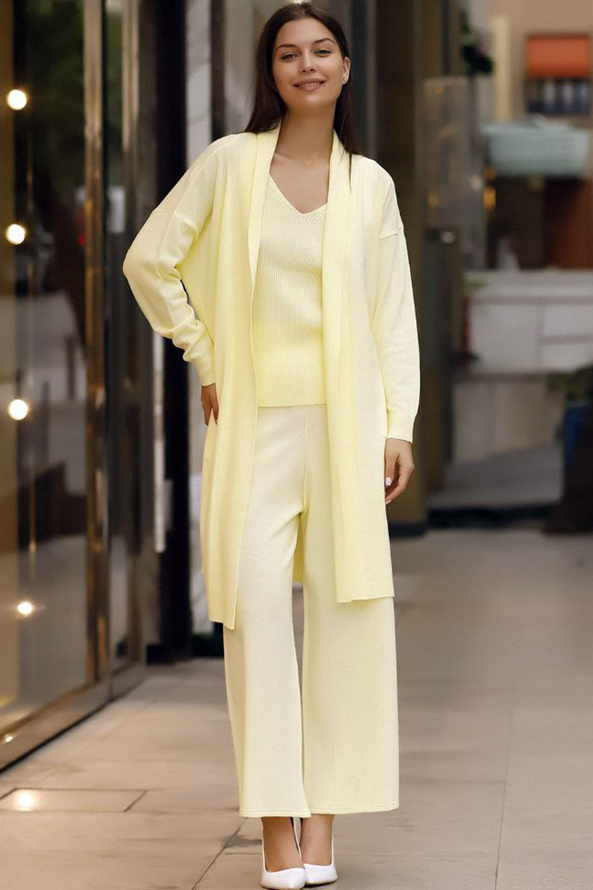 V Yaka Fitilli Askılı Atlet U Uzun Kol Cepli Hırka Beli Lastikli Düz Paça Pantolon Triko Üçlü Takım V Yaka Fitilli Askılı Atlet U Uzun Kol Cepli Hırka Beli Lastikli Düz Paça Pantolon Triko Üçlü Takım ALCH-00025 XL