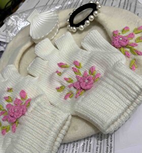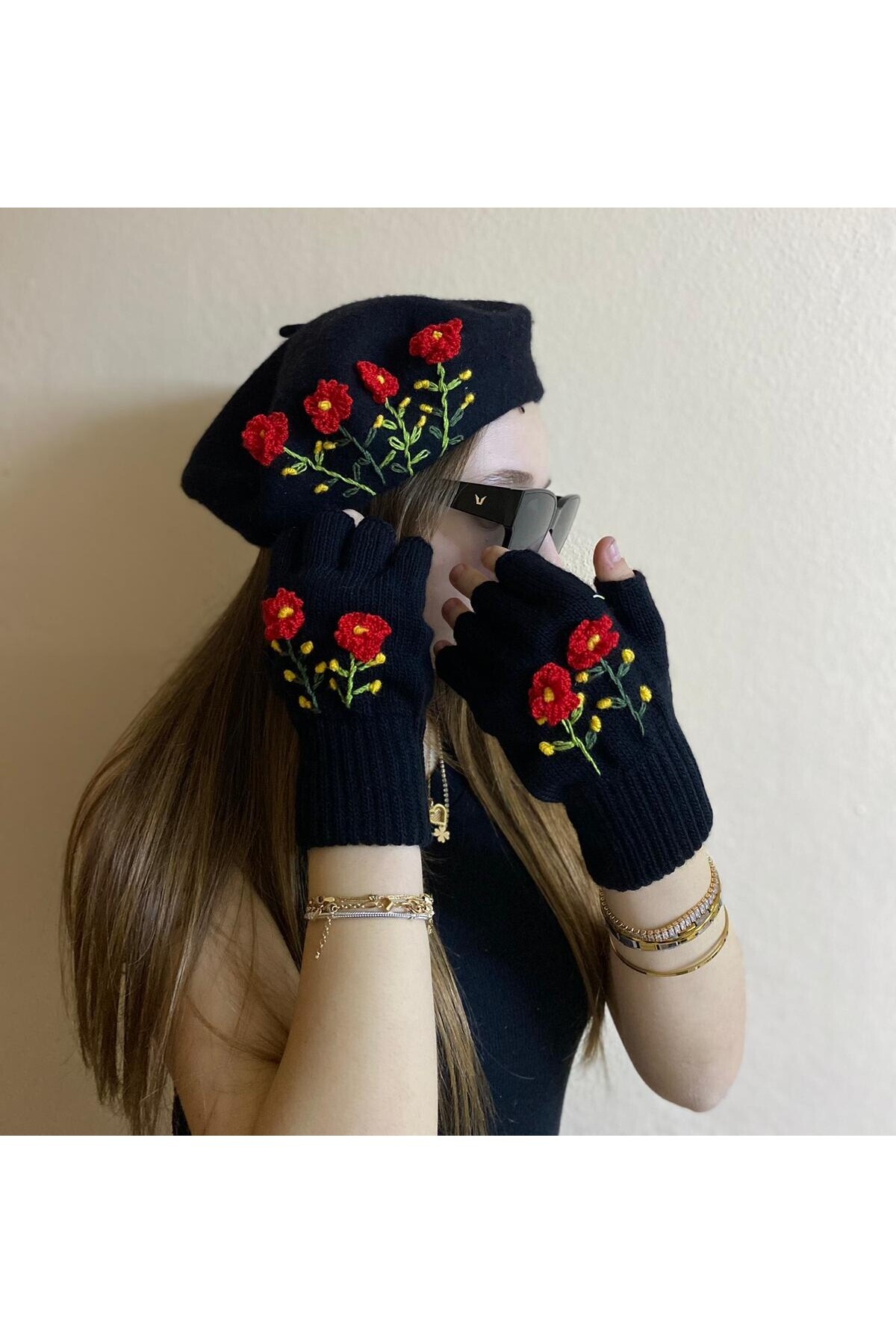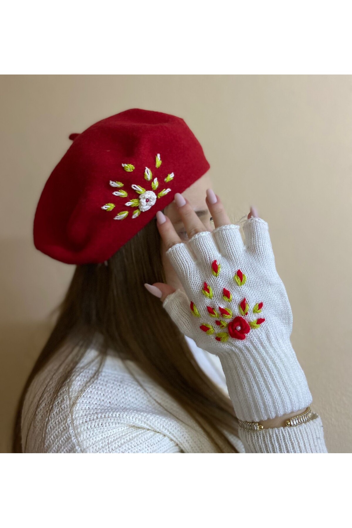 El Emeği Ekru İncili Çiçek İşlemeli Fransız Ressam Bere Ve Parmakları Kesik Eldiven Takım - Hediye El Emeği Ekru İncili Çiçek İşlemeli Fransız Ressam Bere Ve Parmakları Kesik Eldiven Takım - Hediye 55EMG-TSR99H Standart