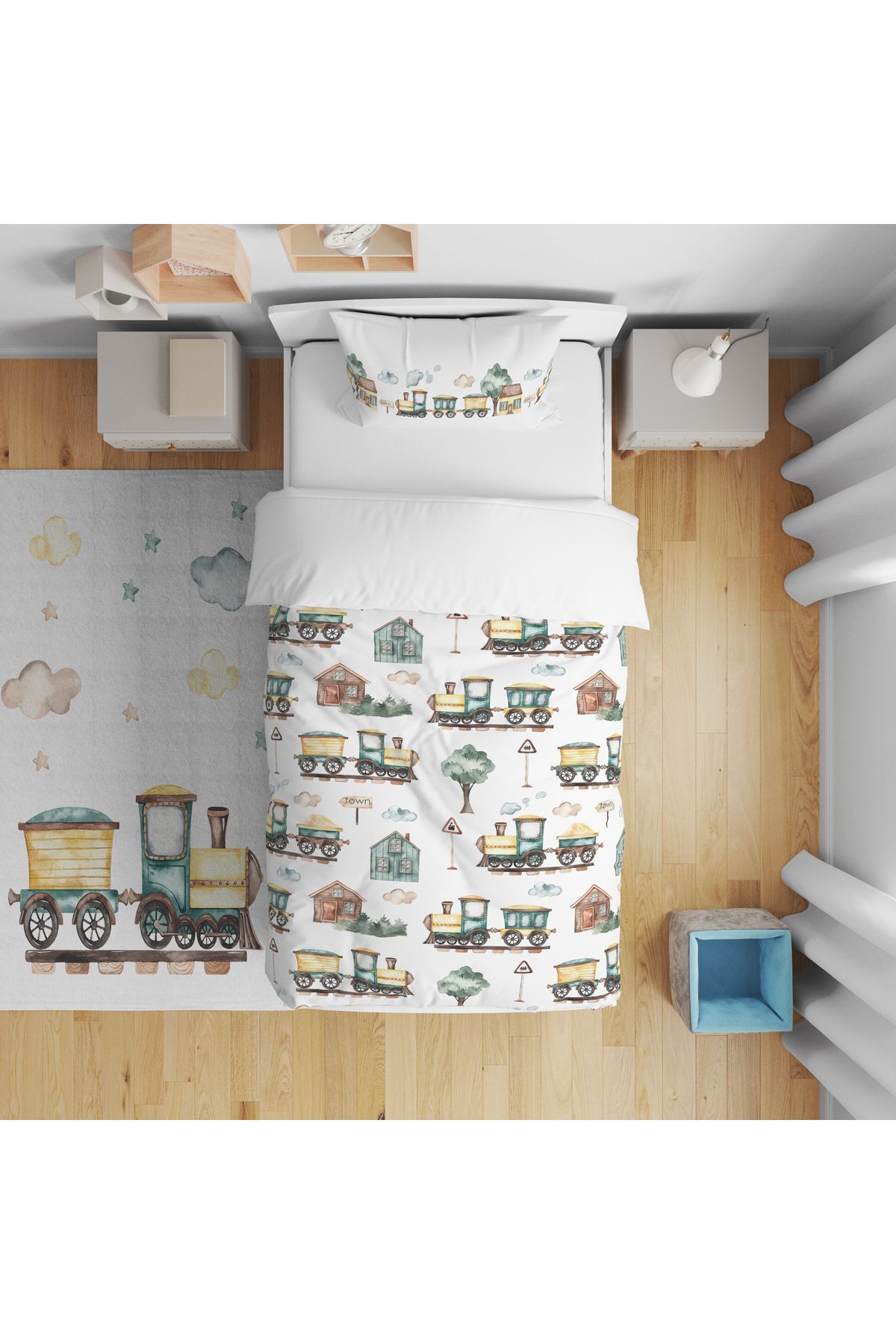 Çocuk Bebek Nevresim Takımı İnşaat Arabaları Çocuk Bebek Nevresim Takımı İnşaat Arabaları yenint-4032 تک سایز