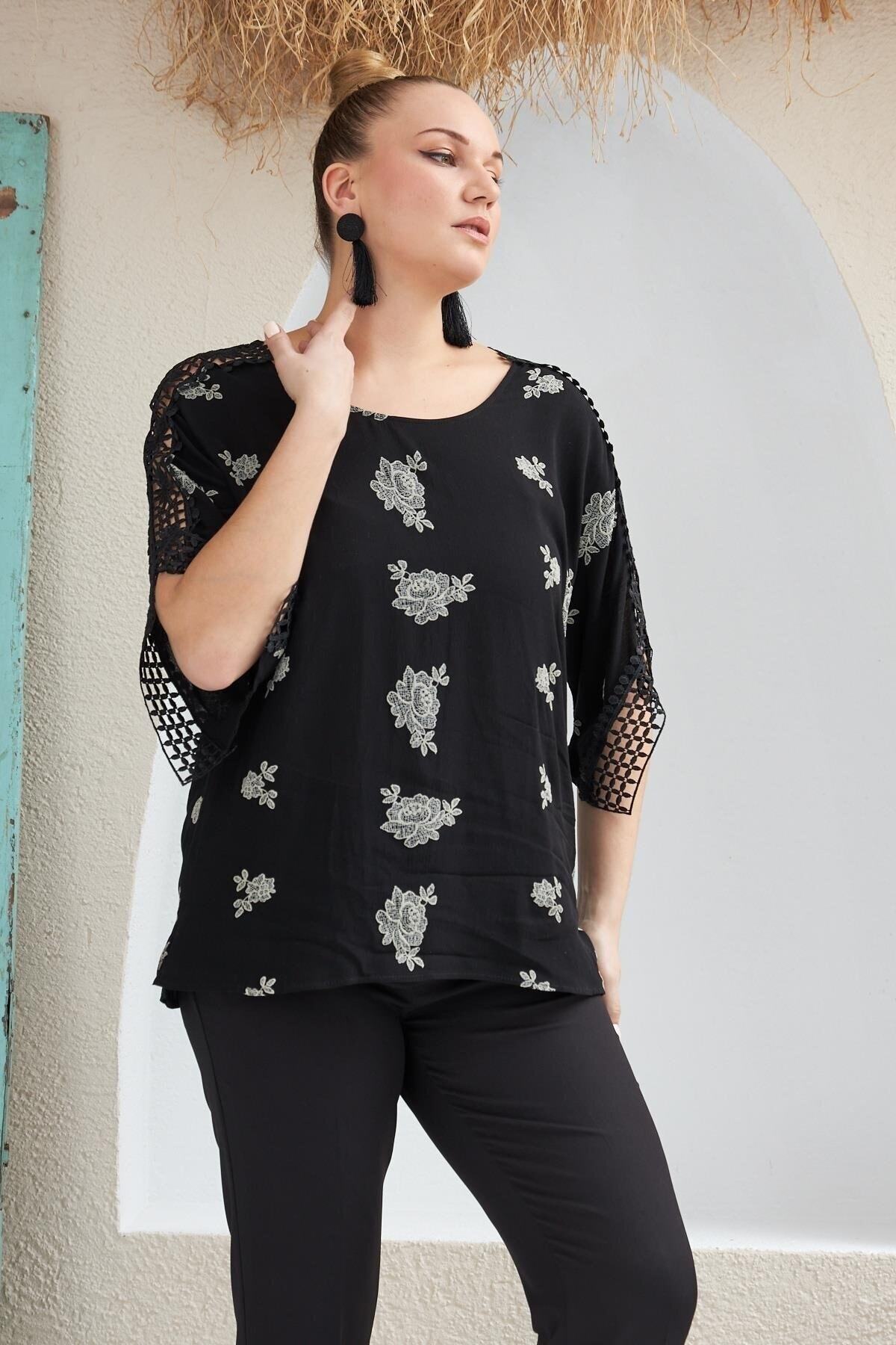 Şıklığına Şıklık Katacağın Yaka Aksesuarlı Cepli Büyük Beden Siyah Bluz Şıklığına Şıklık Katacağın Yaka Aksesuarlı Cepli Büyük Beden Siyah Bluz 041242452120 54