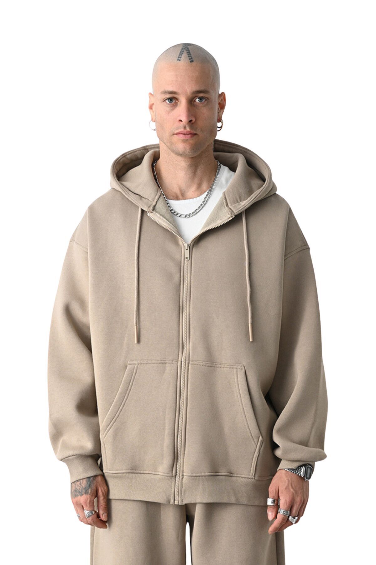Erkek Basic HAKİ Unisex Tam Fermuar Sweatshirt Hırka Erkek Basic HAKİ Unisex Tam Fermuar Sweatshirt Hırka YKM00009 XL