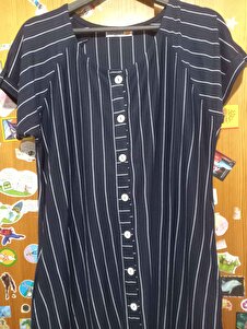 kadın çizgi desenli kısa kollu cepli elbise kadın çizgi desenli kısa kollu cepli elbise 21280 2XL