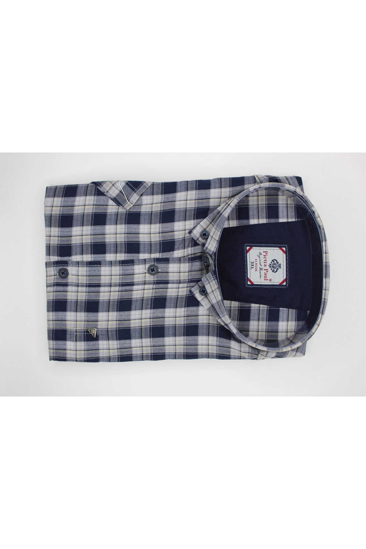 Geniş Kalıp Kareli Kısa Kol Cepli Pamuklu Erkek Gömlek Geniş Kalıp Kareli Kısa Kol Cepli Pamuklu Erkek Gömlek 1026-BK 5XL