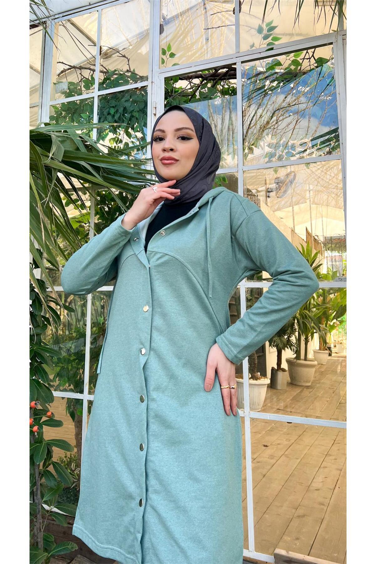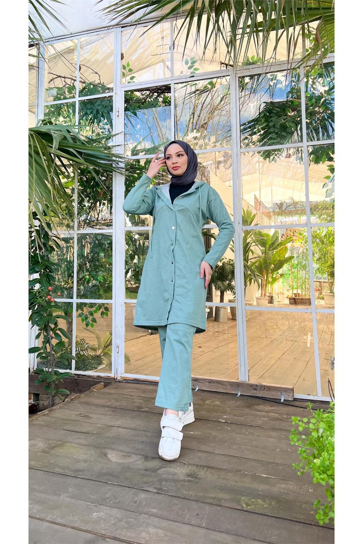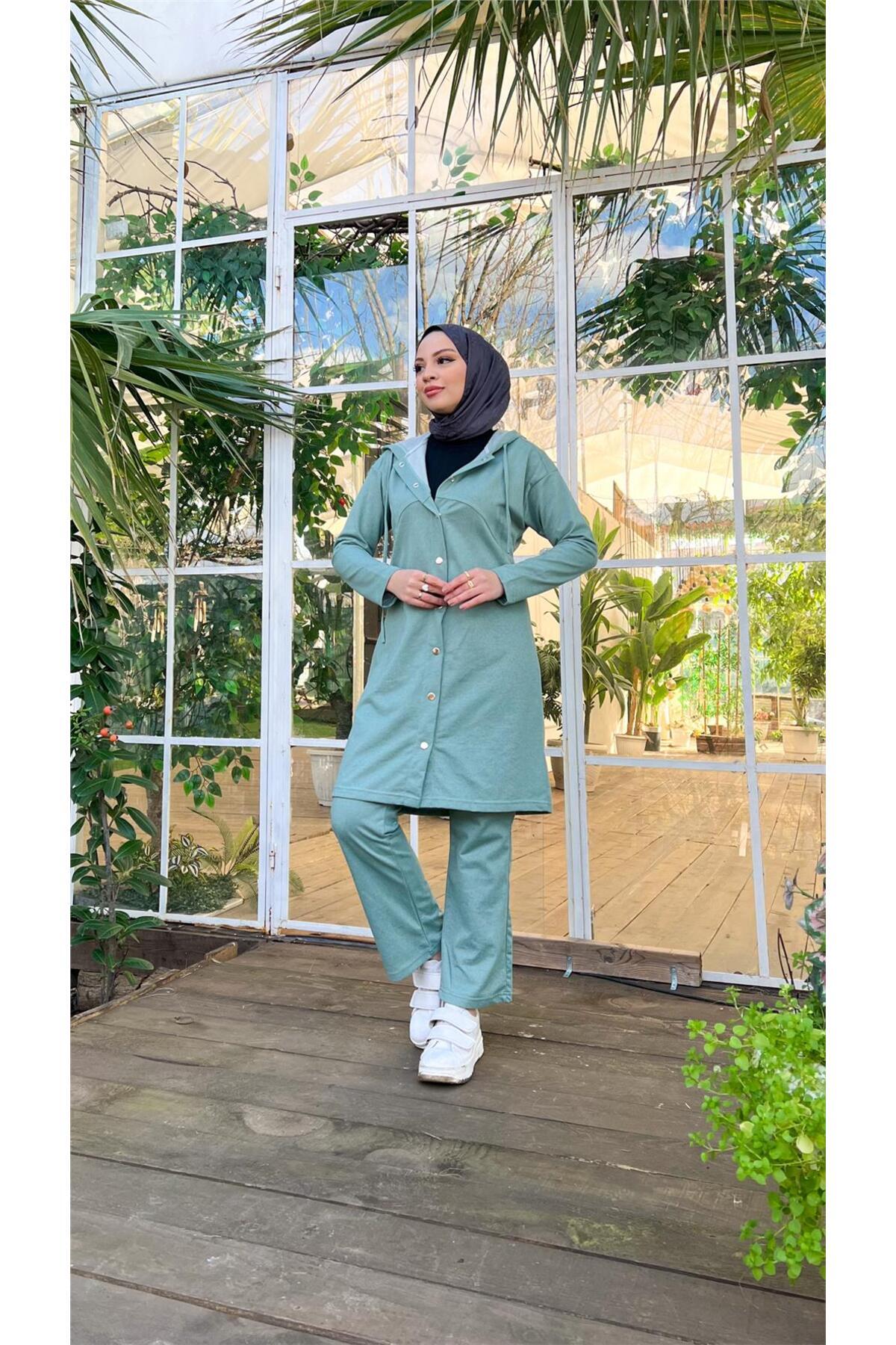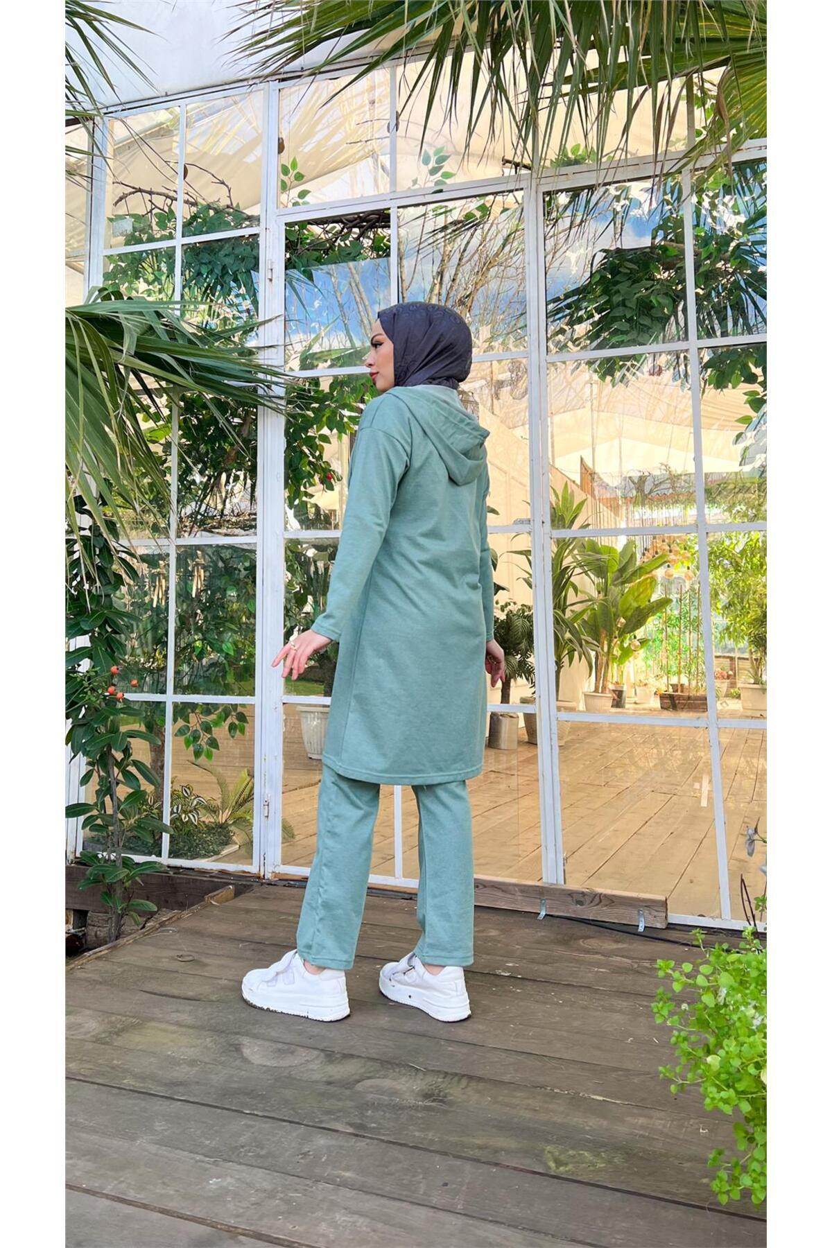 Çıtçıtlı Kapşonlu Uzun Tunik Pantolon İkili Tesettür Eşofman Takımı - 03078.100 - Çağla Yeşili Çıtçıtlı Kapşonlu Uzun Tunik Pantolon İkili Tesettür Eşofman Takımı - 03078.100 - Çağla Yeşili 46