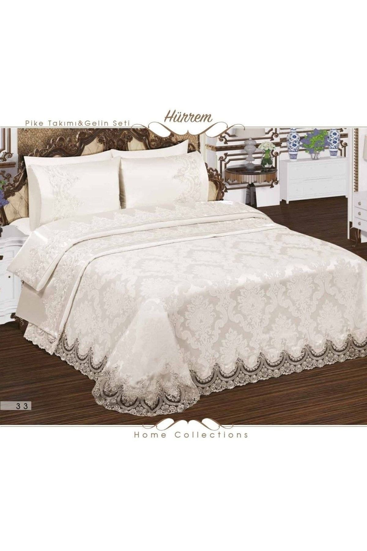 Sahra Pike Takımı Çift Kişilik Fransız Dantelli Krem Sahra Pike Takımı Çift Kişilik Fransız Dantelli Krem ELGTPİKE1 تک سایز