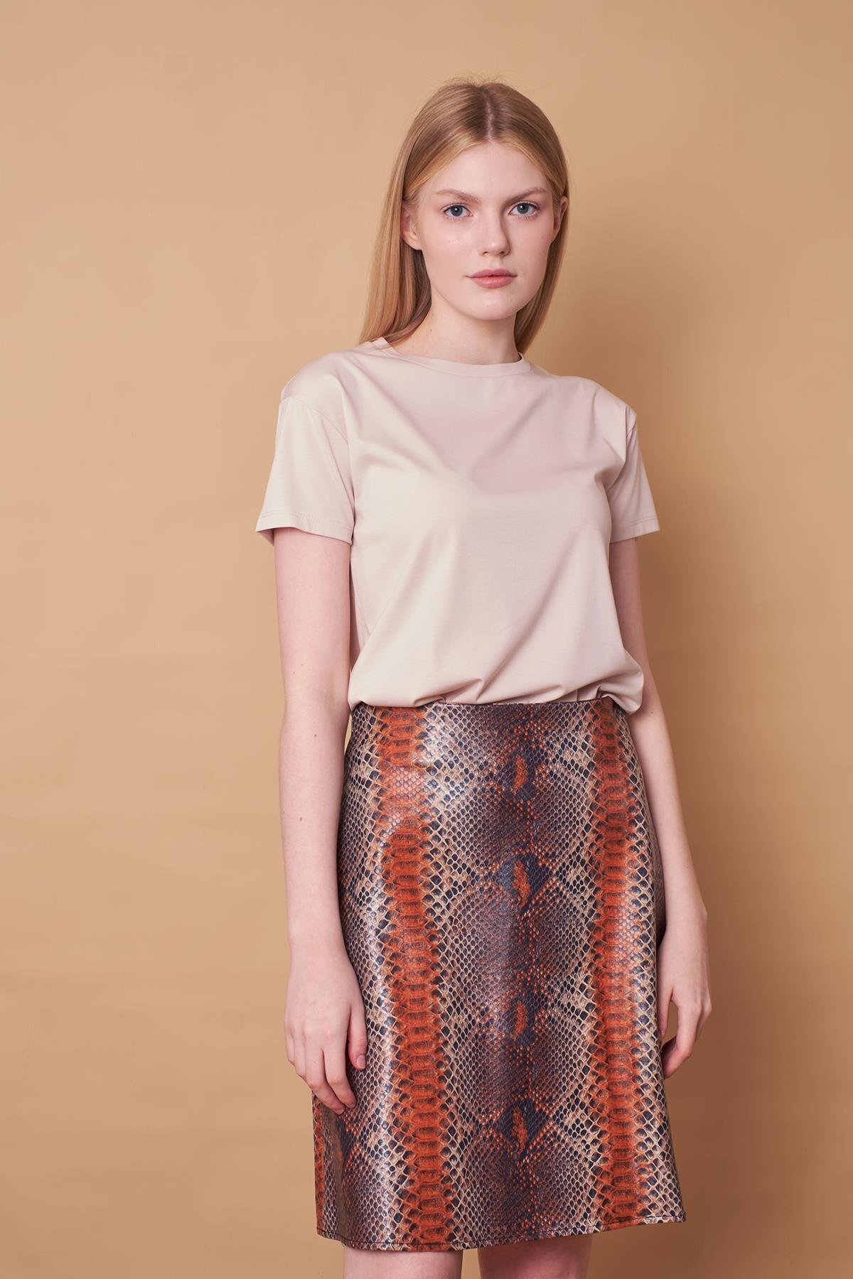 Kadın Desenli Deri Yüksek Bel Diz Boy Çan Etek-Camel Yılan Kadın Desenli Deri Yüksek Bel Diz Boy Çan Etek-Camel Yılan 100082 42