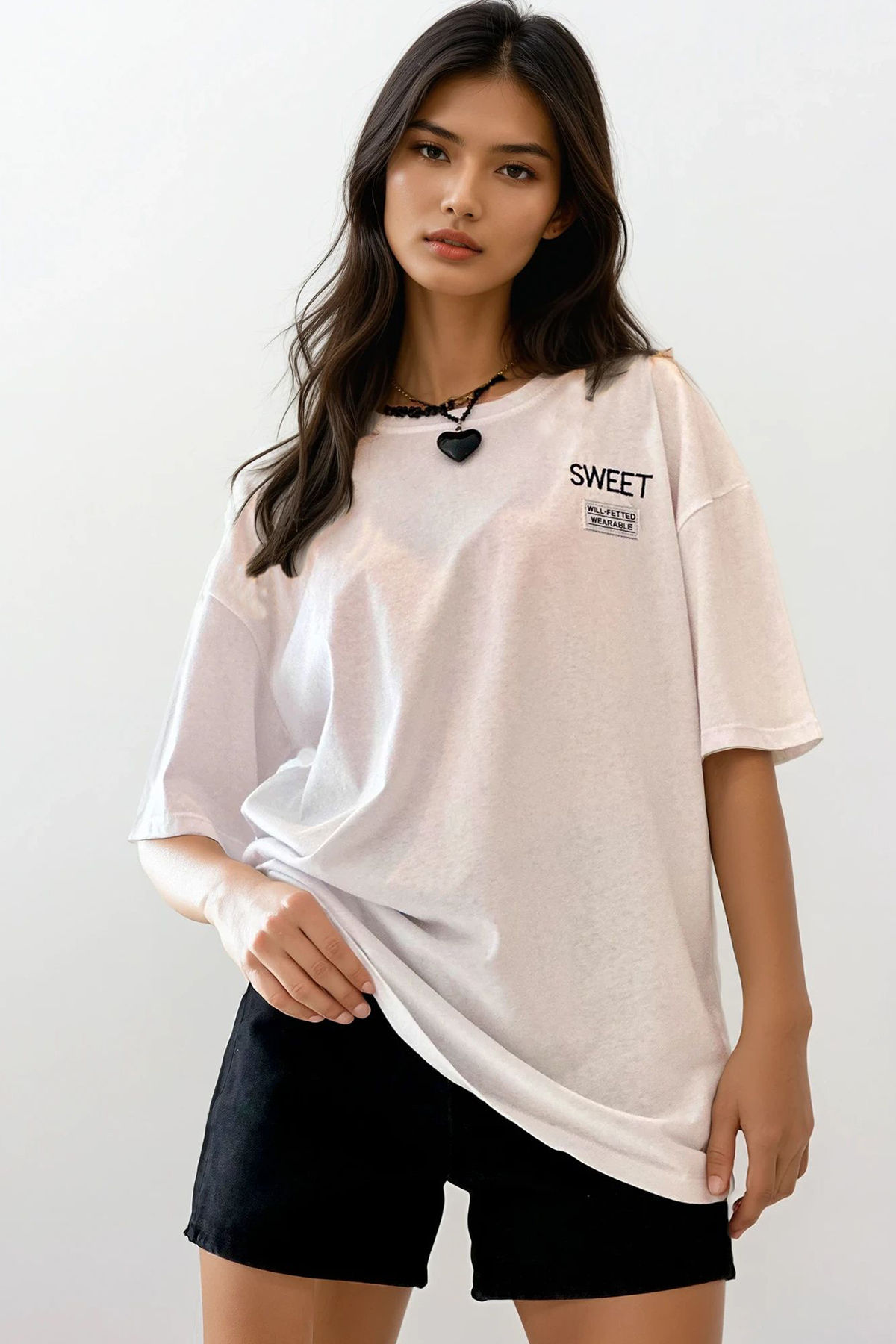 Kadın Beyaz Bisiklet Yaka İki İplik Nakışlı Oversize Unisex T-Shirt ALC-X11502 Kadın Beyaz Bisiklet Yaka İki İplik Nakışlı Oversize Unisex T-Shirt ALC-X11502 XL