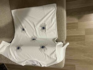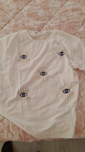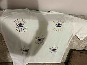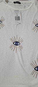 Kadın Beyaz Bisiklet Yaka Göz Baskılı T-Shirt ALC-X11507 Kadın Beyaz Bisiklet Yaka Göz Baskılı T-Shirt ALC-X11507 XL