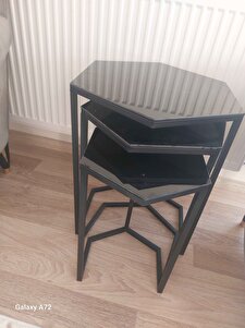 Usta Altıgen Siyah Metal Siyah Cam 3lü Zigon Sehpa Usta Altıgen Siyah Metal Siyah Cam 3lü Zigon Sehpa 6gen تک سایز