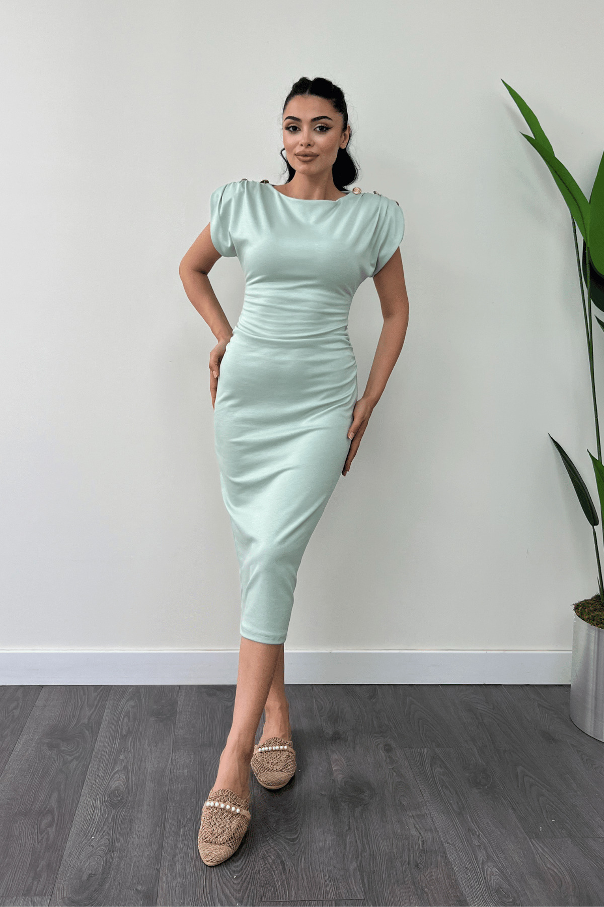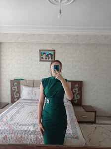 Atlas Kumaş Büzgü ve Bronş Detaylı Kalem Elbise - ZÜMRÜT YEŞİL Atlas Kumaş Büzgü ve Bronş Detaylı Kalem Elbise - ZÜMRÜT YEŞİL GYM-4126 42