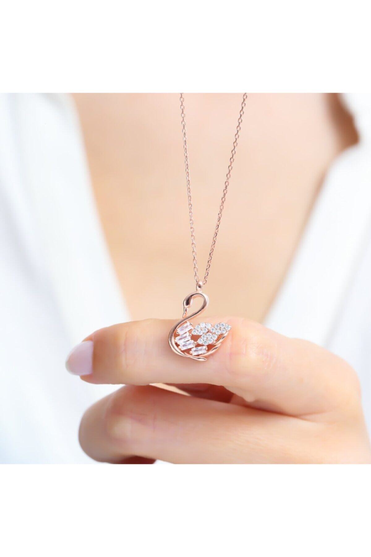 Işıltılı Kelebek Parıltısı Rose Renk Gümüş Kolye Işıltılı Kelebek Parıltısı Rose Renk Gümüş Kolye KL03734-MLV تک سایز