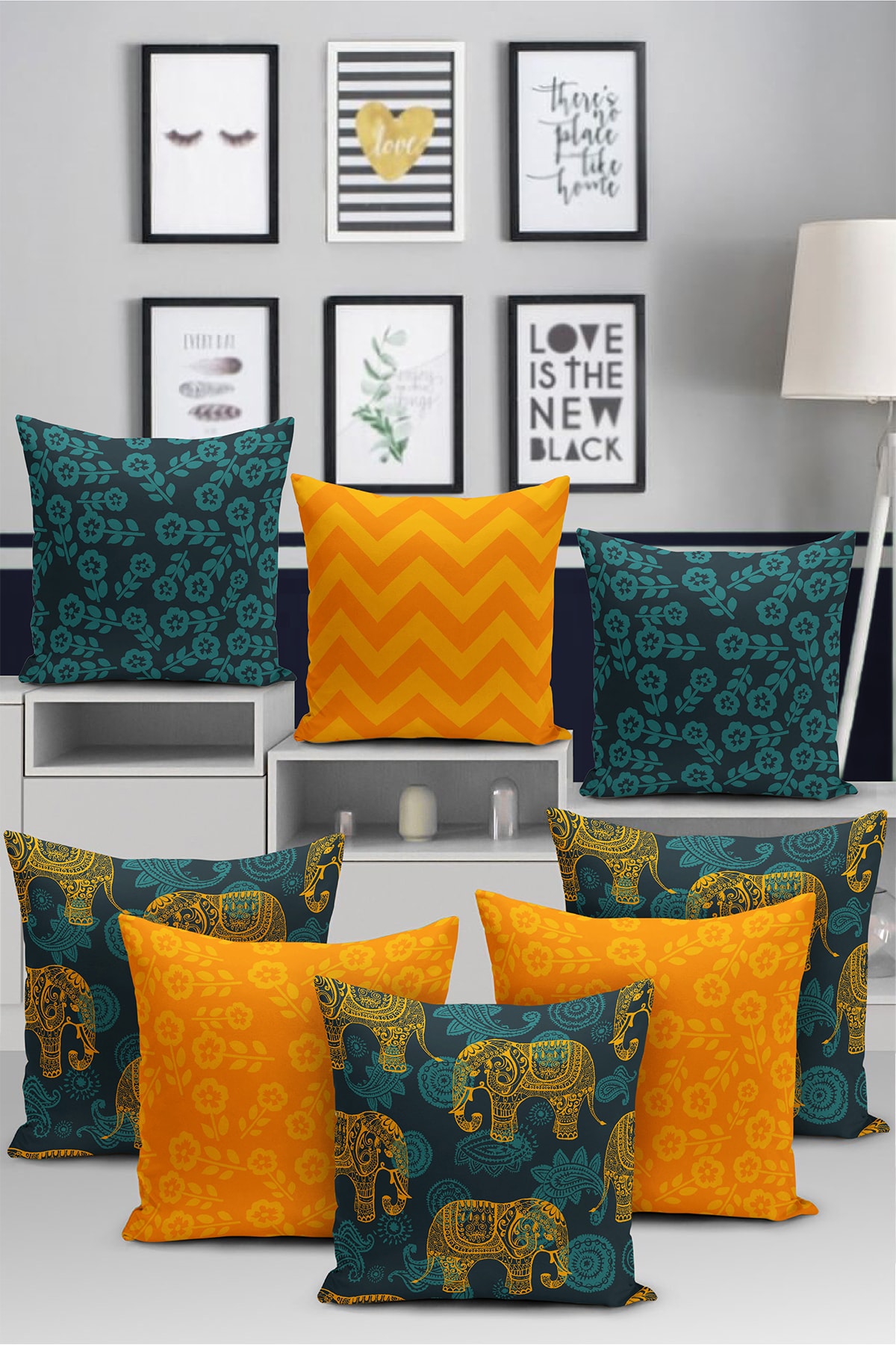8'li Özel Tasarım Dijital Baskılı Yastık Kırlent Kılıfı 8'li Özel Tasarım Dijital Baskılı Yastık Kırlent Kılıfı RealRylPtkSet71 43 x 43
