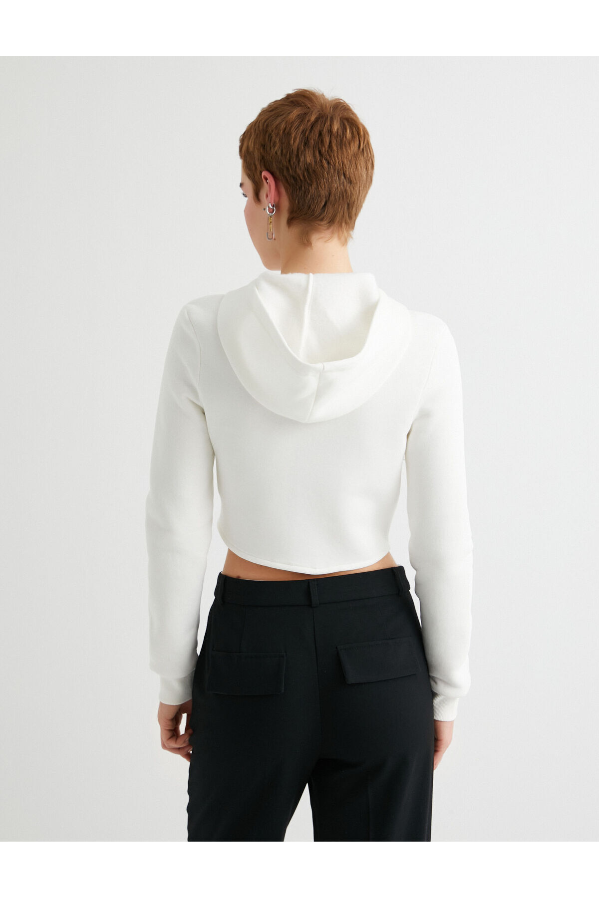 Şardonlu Crop Fermuarlı Kapüşonlu Sweatshirt Kolej Temalı Uzun Kollu Slim Fit Şardonlu Crop Fermuarlı Kapüşonlu Sweatshirt Kolej Temalı Uzun Kollu Slim Fit 4SAL10410IK XL