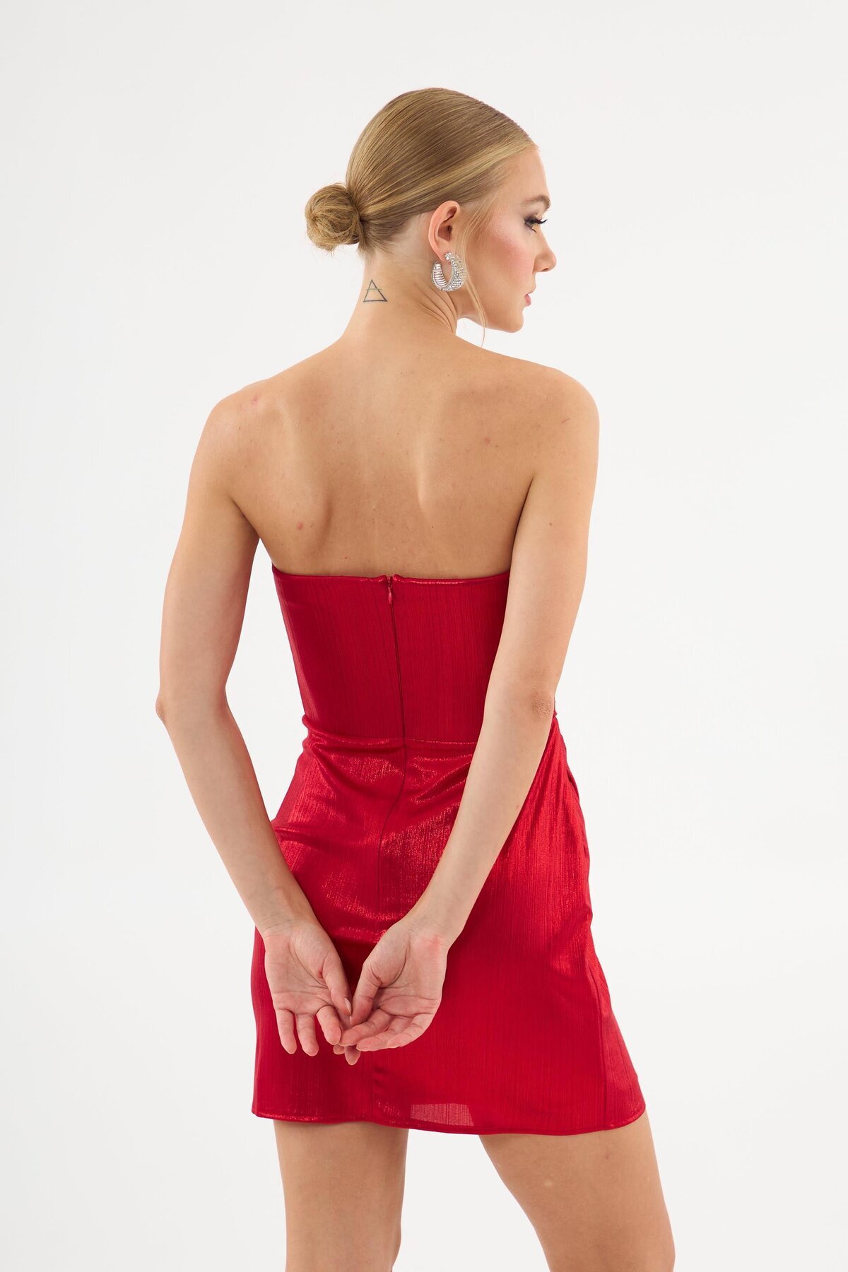 Kırmızı Straplez Çizgili Laklı Parlak Abiye Elbise Kırmızı Straplez Çizgili Laklı Parlak Abiye Elbise 58337 42