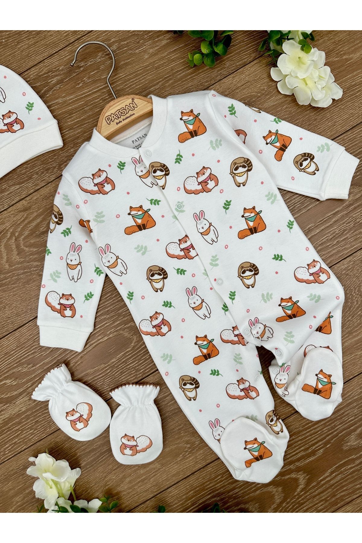 Organik Pamuklu 3'lü Eldivenli Şapkalı Patikli Bebek Tulumu Takımı Amazon Zürafa Leopar Gergedan Organik Pamuklu 3'lü Eldivenli Şapkalı Patikli Bebek Tulumu Takımı Amazon Zürafa Leopar Gergedan 86989955055720 3-6 AY