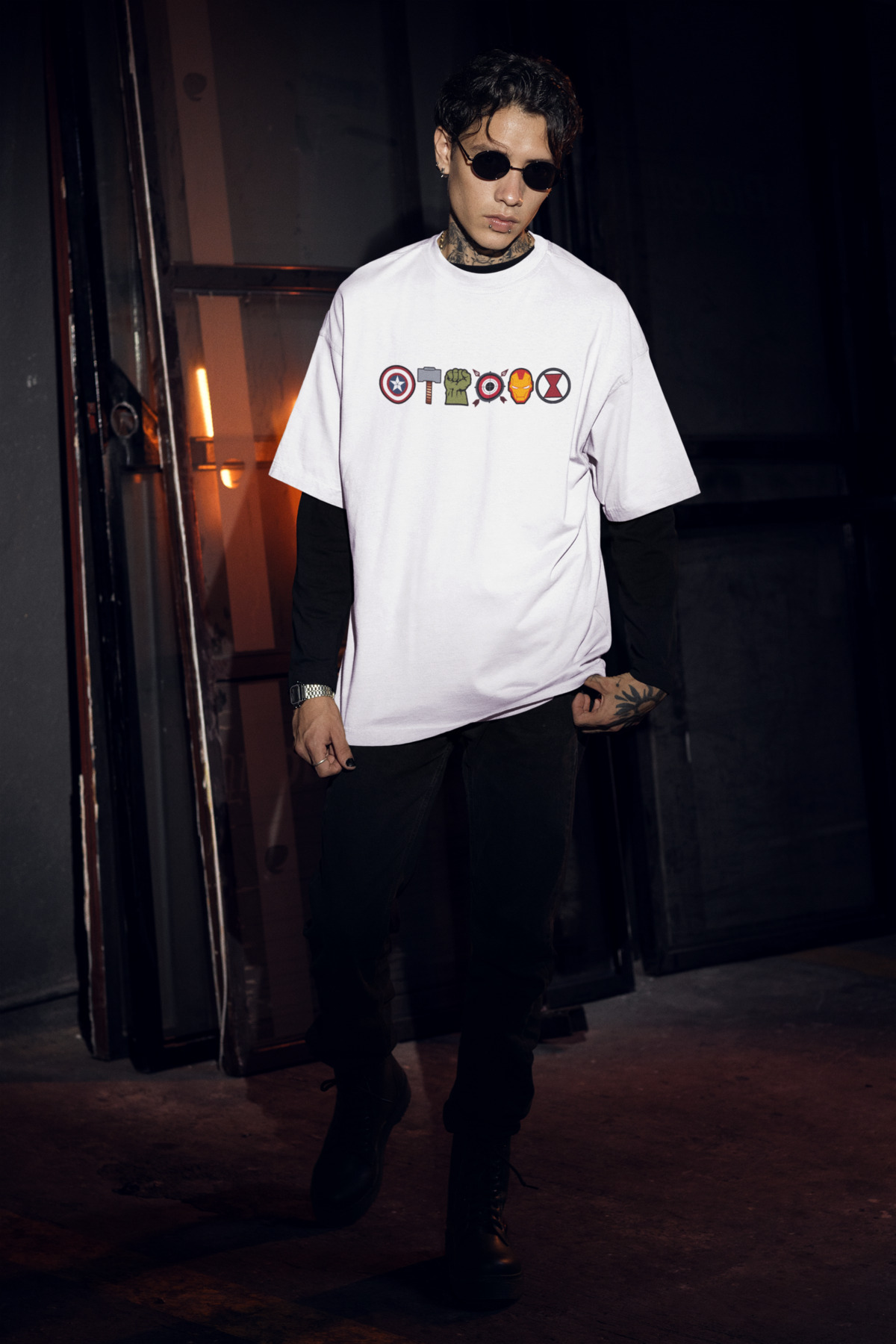Yenilmezler Marvel Simgeler Baskılı Oversize Unisex Beyaz Tshirt Yenilmezler Marvel Simgeler Baskılı Oversize Unisex Beyaz Tshirt MRVLTSHRT2 XL