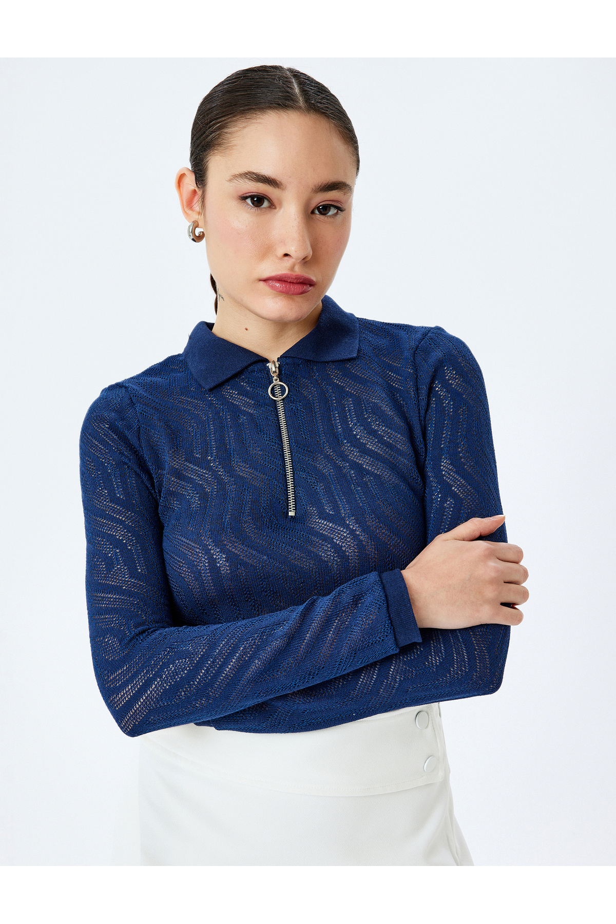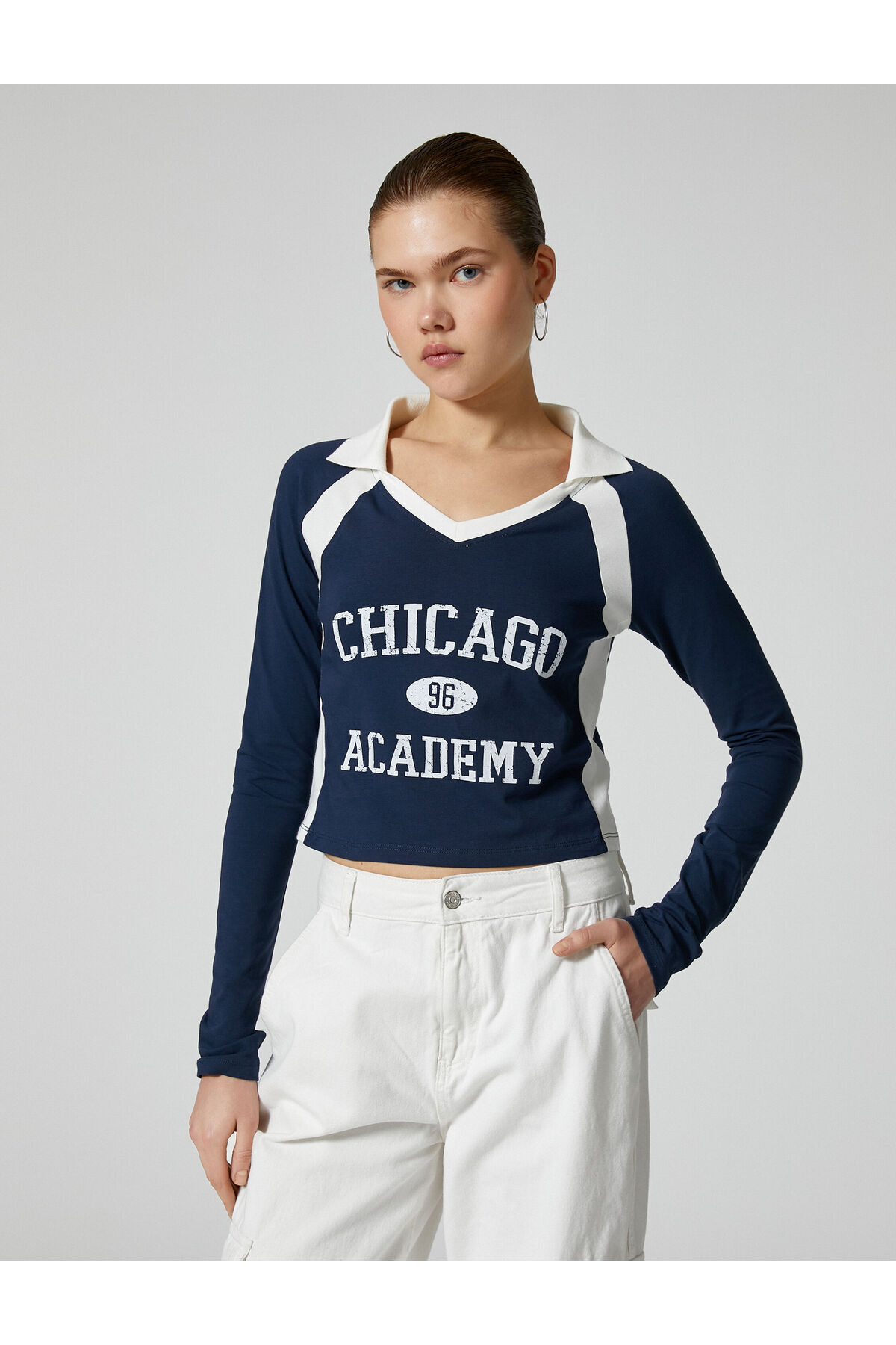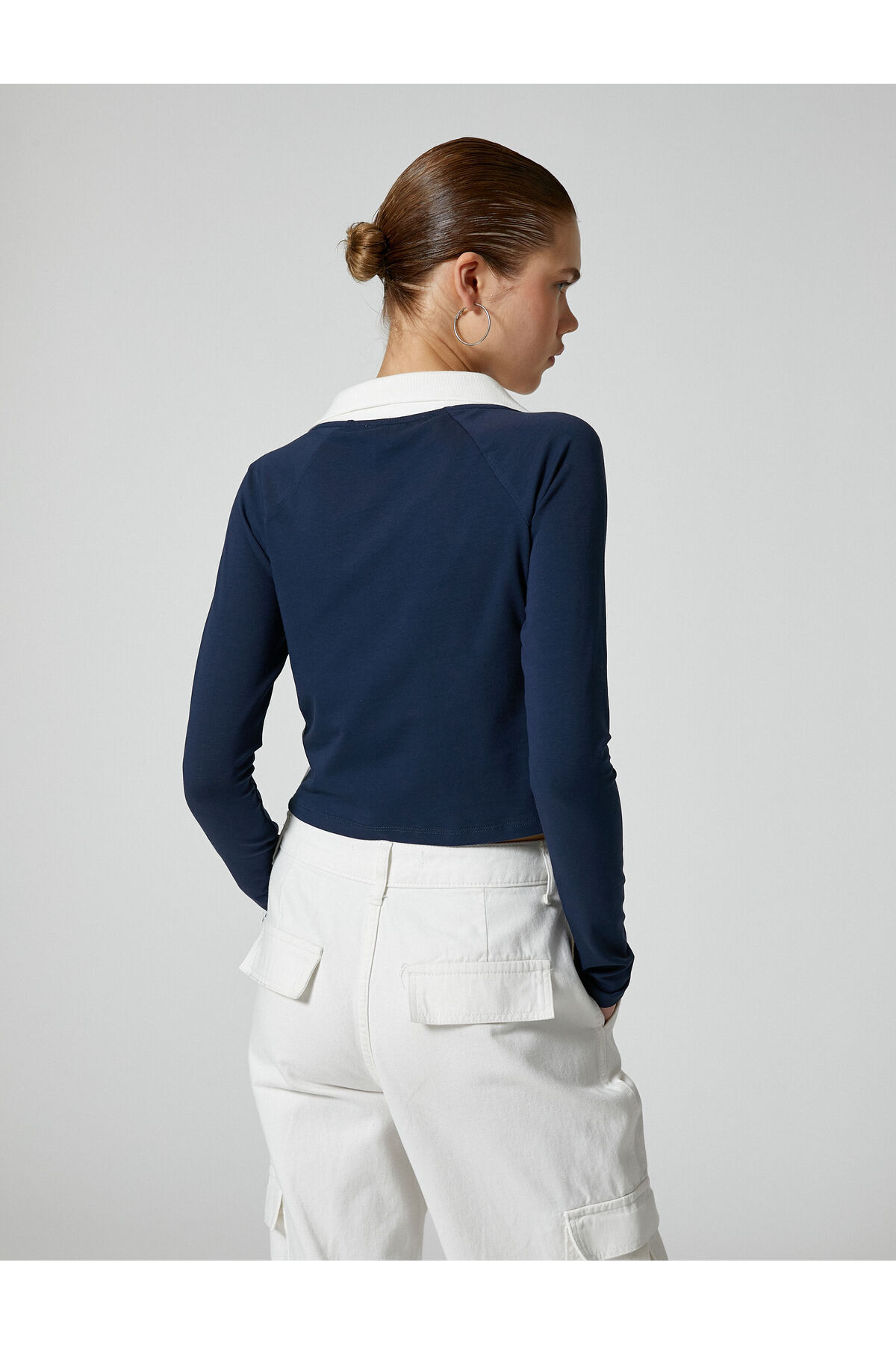 Crop Polo Yaka Tişört Uzun Kollu Renk Bloklu Kolej Temalı Pamuklu Crop Polo Yaka Tişört Uzun Kollu Renk Bloklu Kolej Temalı Pamuklu 4SAL10391IK L