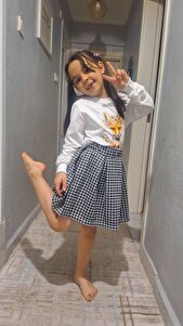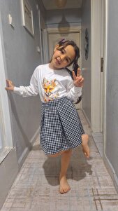 Tarz Ekose Etekli Sevimli Desenli Sweat Etek Takım Tarz Ekose Etekli Sevimli Desenli Sweat Etek Takım ADA12401 9-10 Yaş