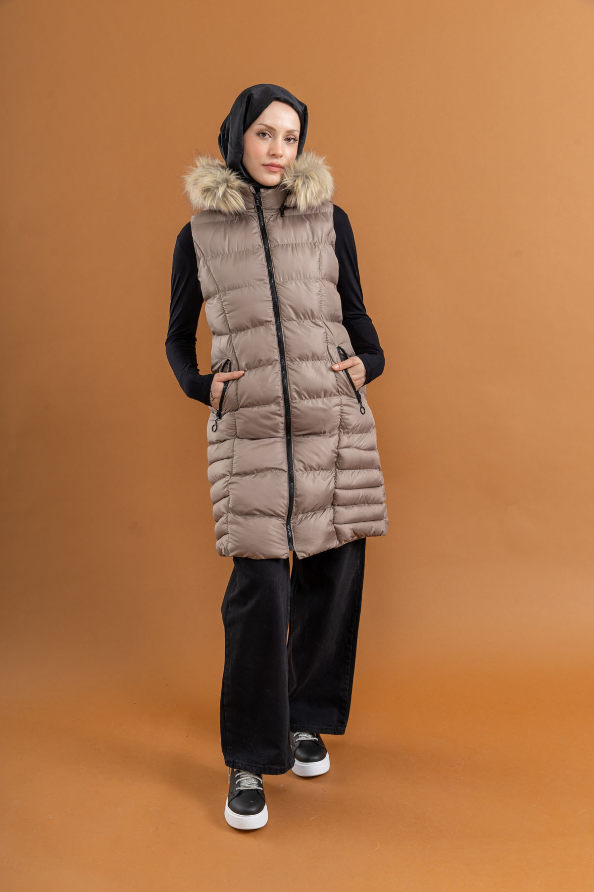 Kapitone beyaz triko garnili kapşonlu yelek 50003 Kapitone beyaz triko garnili kapşonlu yelek 50003 TYCZ508QQN170669938589852 42