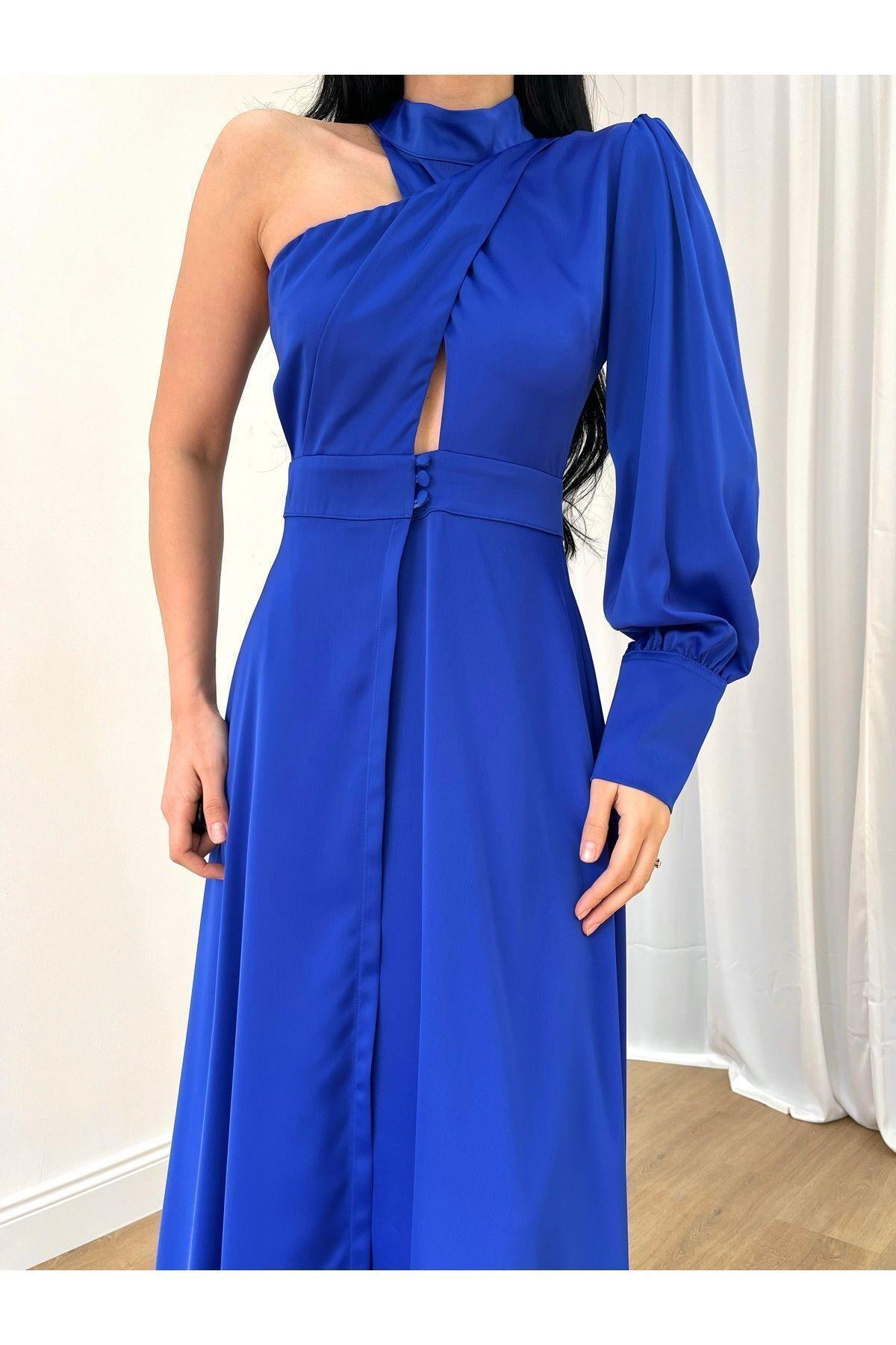 Abiye Kadın Çapraz Boyun Bağlı Tek Kollu Derin Bacak Dekolteli Saten Elbise – Abiye ve Mezuniyet Abiye Kadın Çapraz Boyun Bağlı Tek Kollu Derin Bacak Dekolteli Saten Elbise – Abiye ve Mezuniyet MSCX061 L
