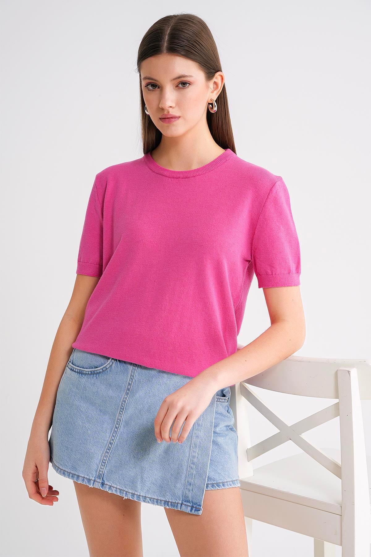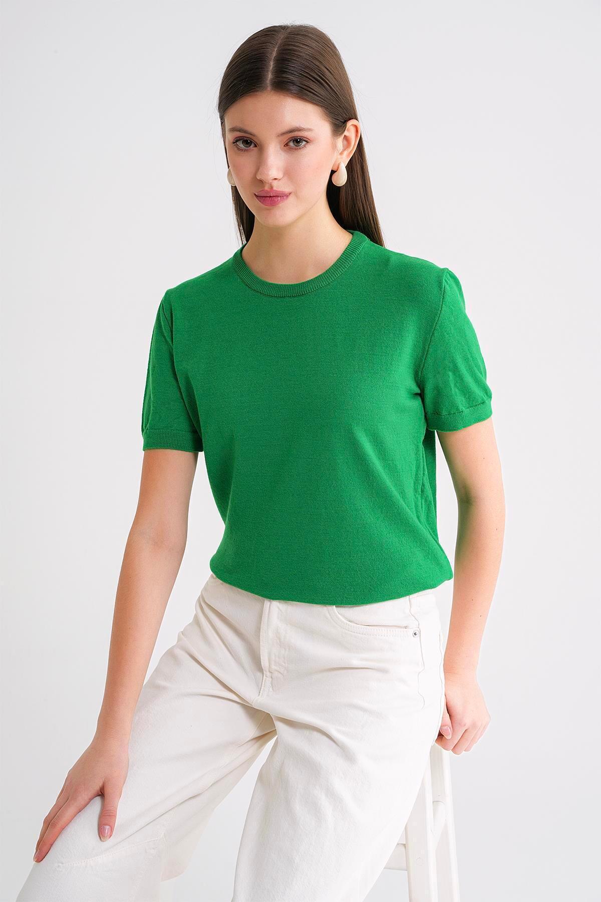 Basıc Kısa Kollu Triko Kazak-Haki Basıc Kısa Kollu Triko Kazak-Haki kısa001 Standart